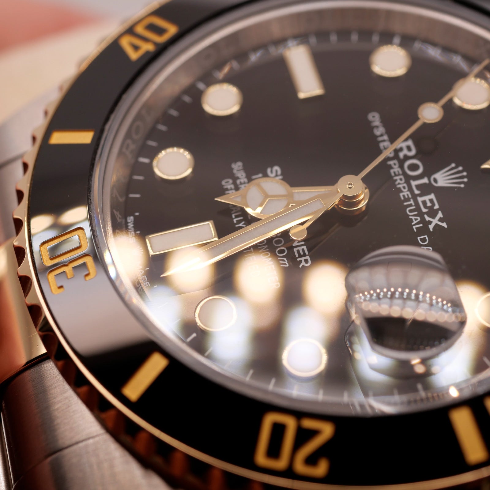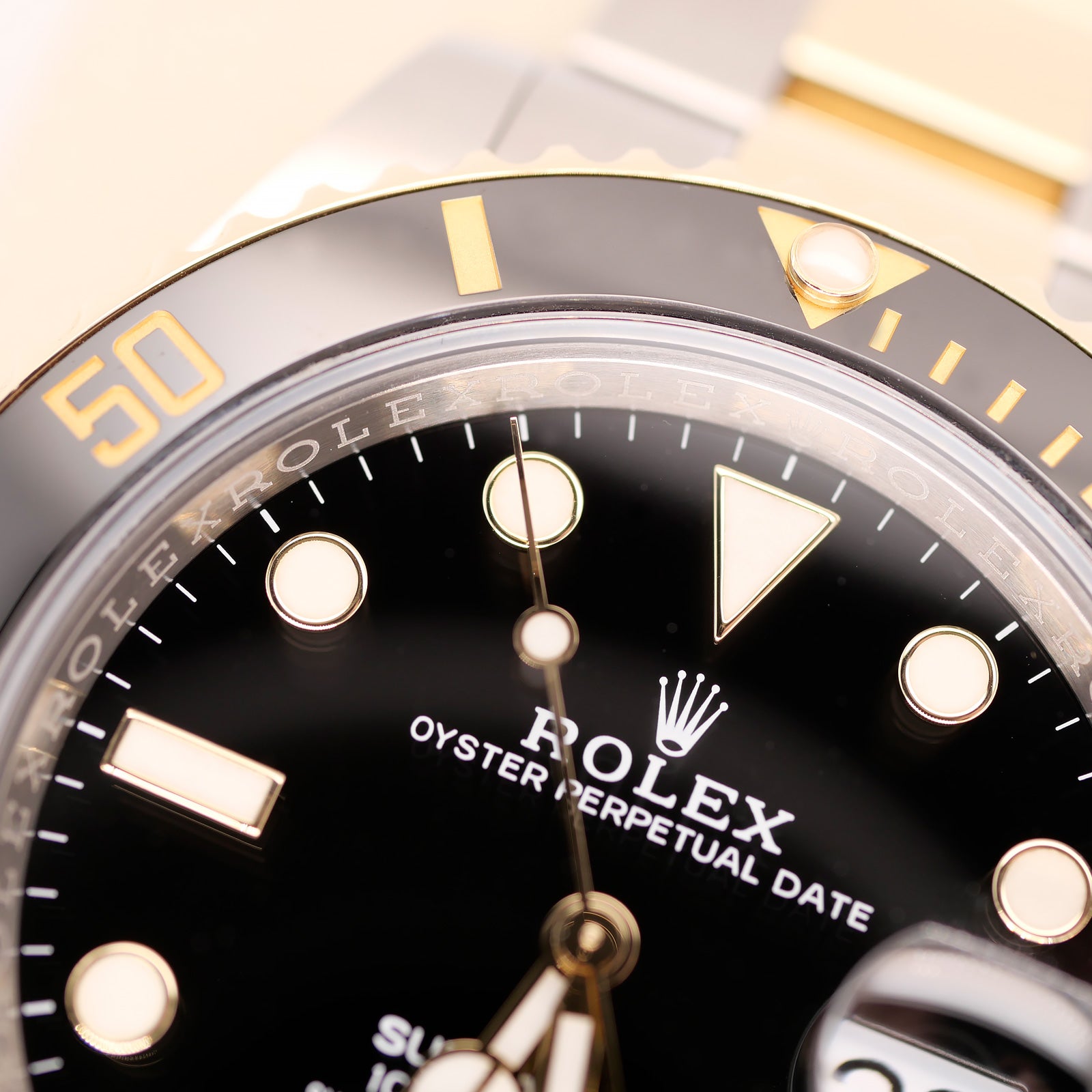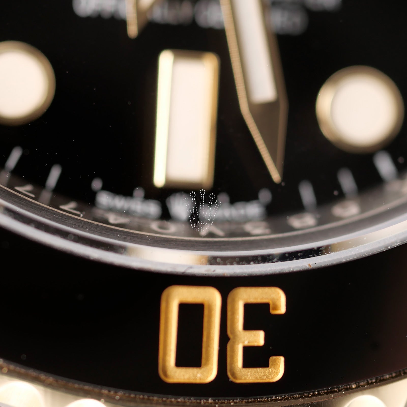 Genuine: The inner bezel, or rehaut, features the word “ROLEX” engraved around it with precision. It’s sharp, clear, and perfectly aligned.