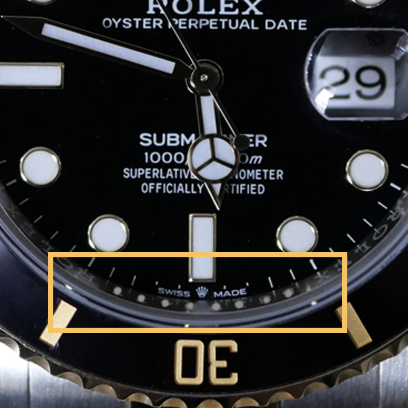 Fake: On fake models, this engraving can often be blurry or uneven, with poor-quality craftsmanship that is noticeable upon close inspection.