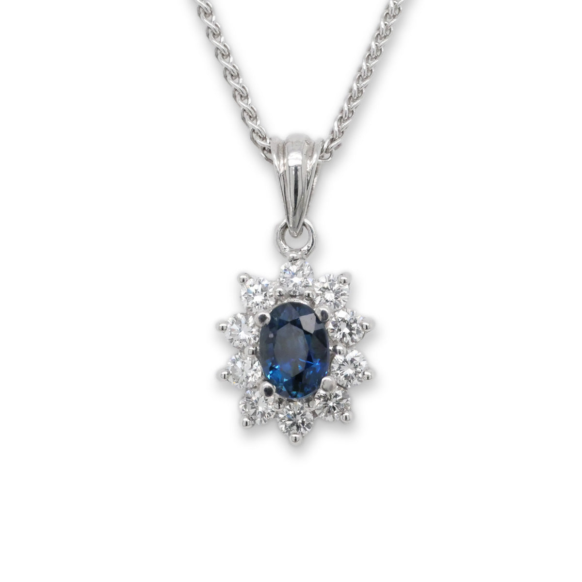 18ct Oval-cut Sapphire and Diamond Halo Pendant