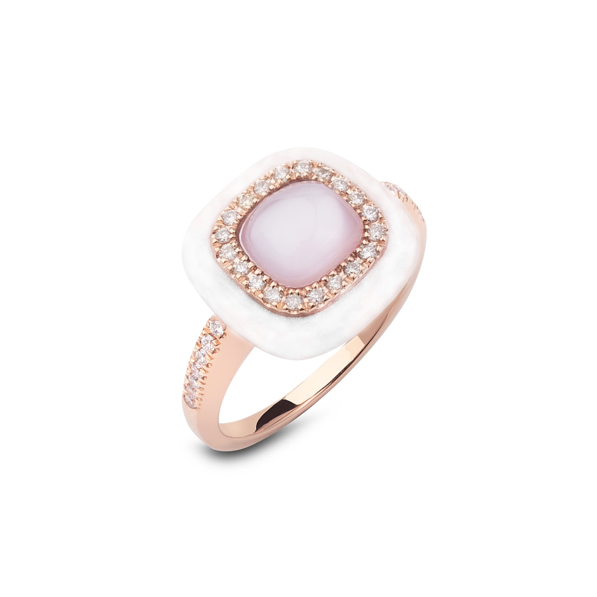 18ct Rose Gold Small White and Pink Rock Crystal Diamond Ring