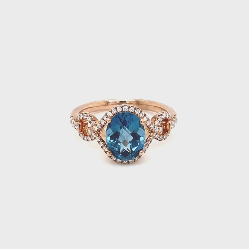 9ct Rose Gold London Blue Topaz and Diamond Ring