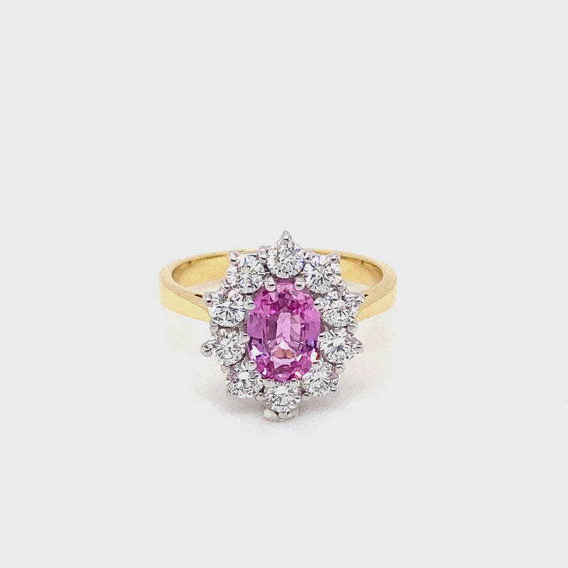 18ct Yellow Gold Pink Sapphire and Diamond Cluster Ring - Size N