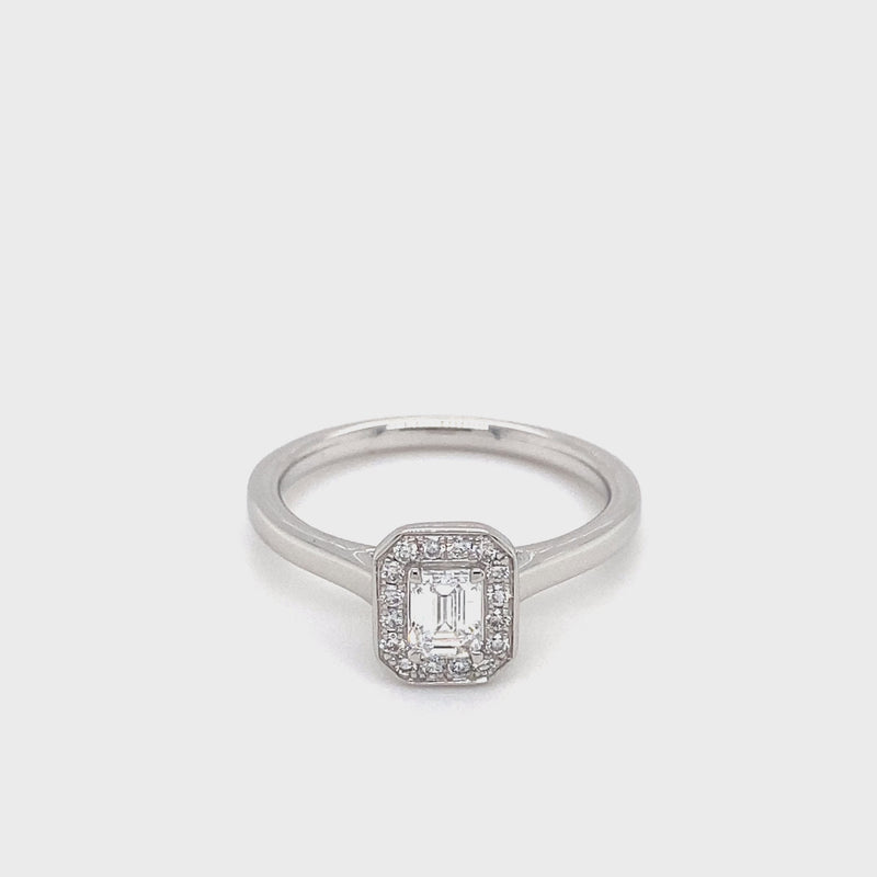 Platinum Emerald Cut Mint Tourmaline & Diamond Halo Ring
