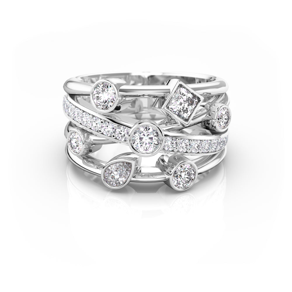- Cut – The cut determines how well a diamond reflects light, influencing its sparkle and brilliance. Popular cuts include Round, Princess, Oval, Emerald, and Pear, each offering a unique style and level of radiance.