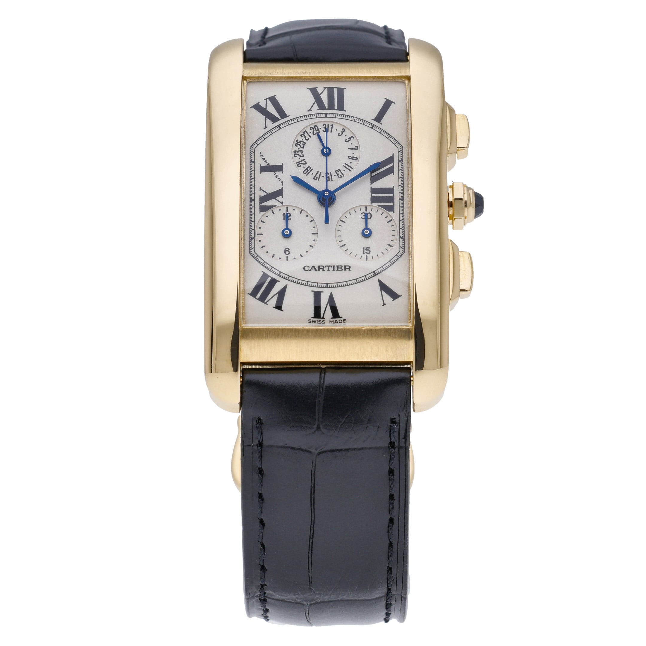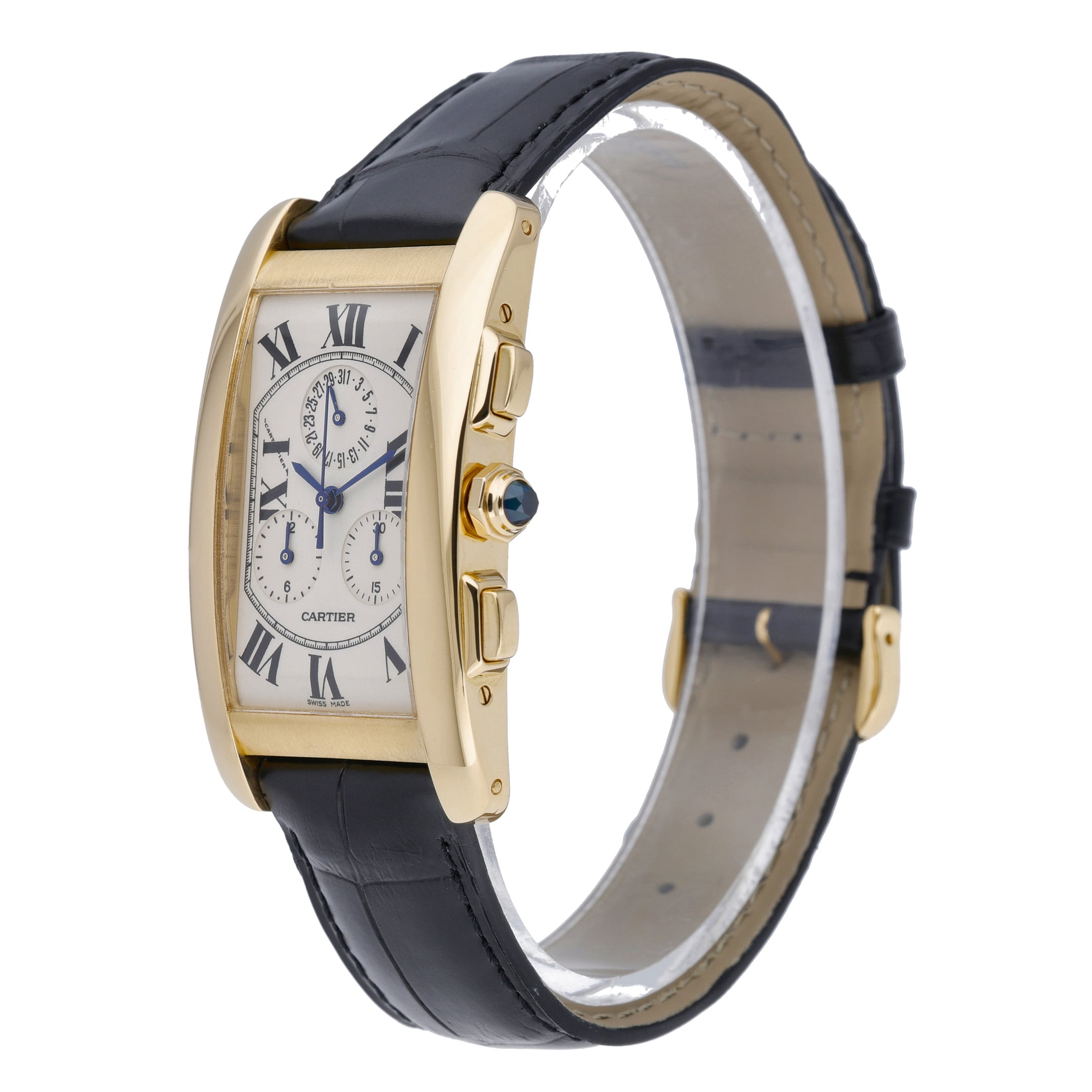 Experience the epitome of luxury and style with the CARTIER TANK AMÉRICAINE - 1730 watch. Crafted with exquisite detail and precision, this iconic timepiece is a true symbol of sophistication and elegance. With a rich history dating back to 1917 when it was created by Louis Cartier himself, the Tank collection has become a timeless classic, worn by celebrities and royalty alike. This particular model, released in 1999, features a 26mm x 45mm 18ct yellow gold case and a sleek leather bracelet with a pin buckle clasp. The watch is powered by a reliable quartz movement and boasts a chronograph dial with a plain bezel, making it both functional and stylish. Complete with its original box and authenticity papers, this midsize watch is in good condition and water resistant up to 30 meters. Don't miss the opportunity to own a piece of Cartier's iconic legacy - add the CARTIER TANK AMÉRICAINE - 1730 to your collection today.