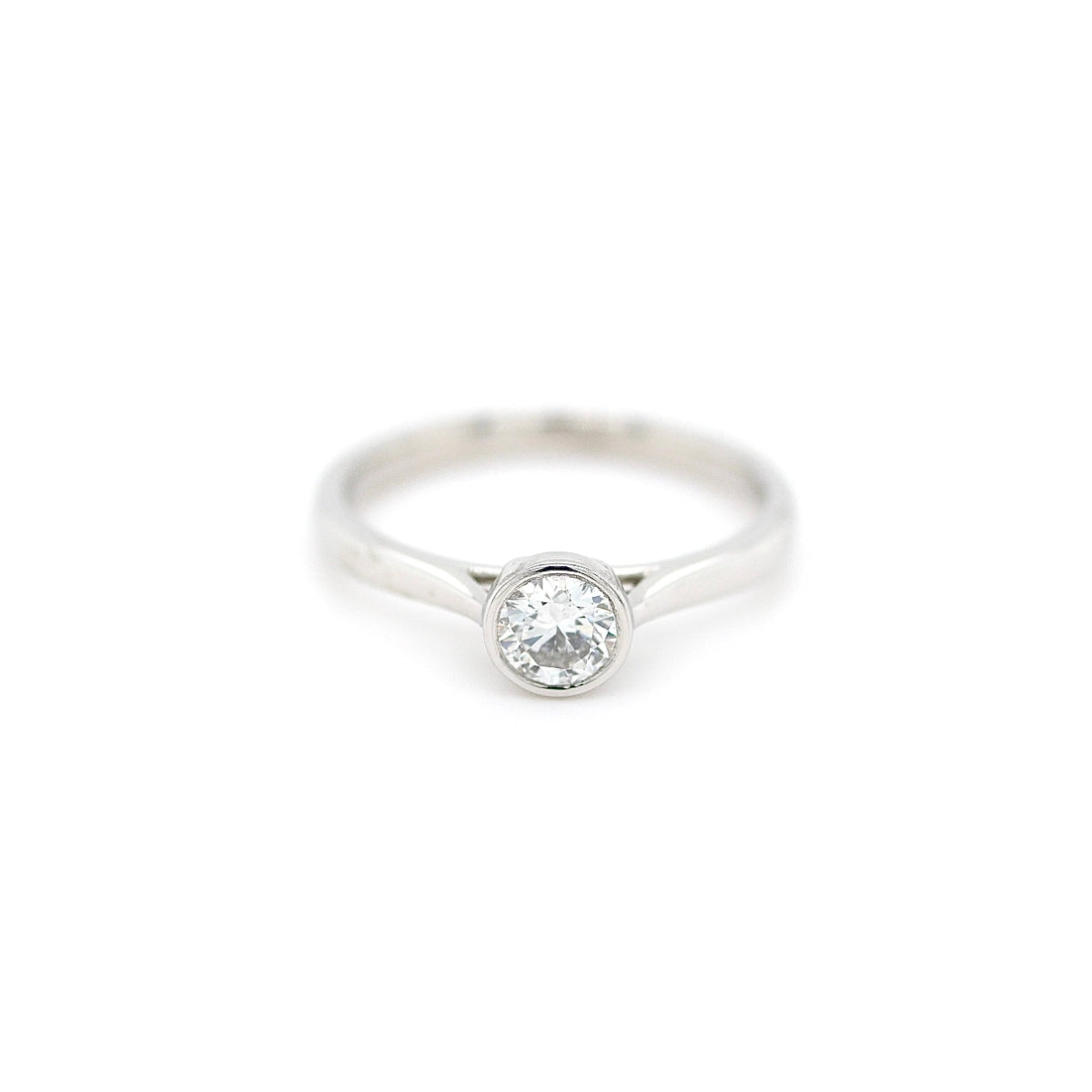 Platinum Rubover Diamond Single Stone Ring - Size K