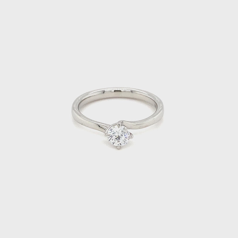 Platinum Single Stone Twist Round Brilliant 0.40ct Diamond Ring - Size M