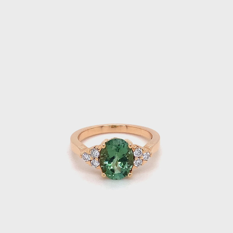 18ct Rose Gold 1.91ct Green Tourmaline & 0.21ct Diamond Ring - Size M