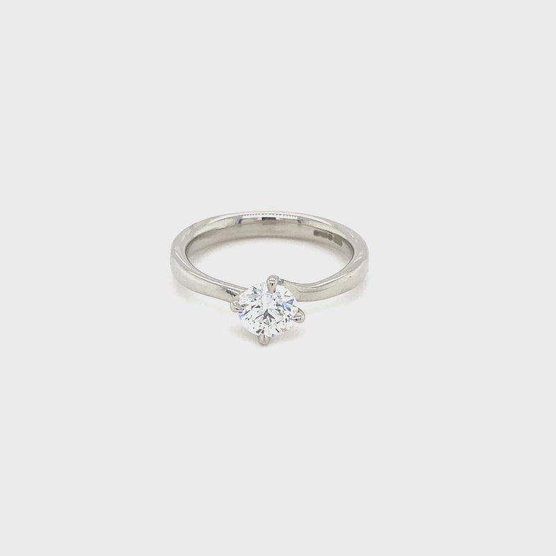 Platinum Round Brilliant Single Stone Diamond Twist Ring 0.70ct
