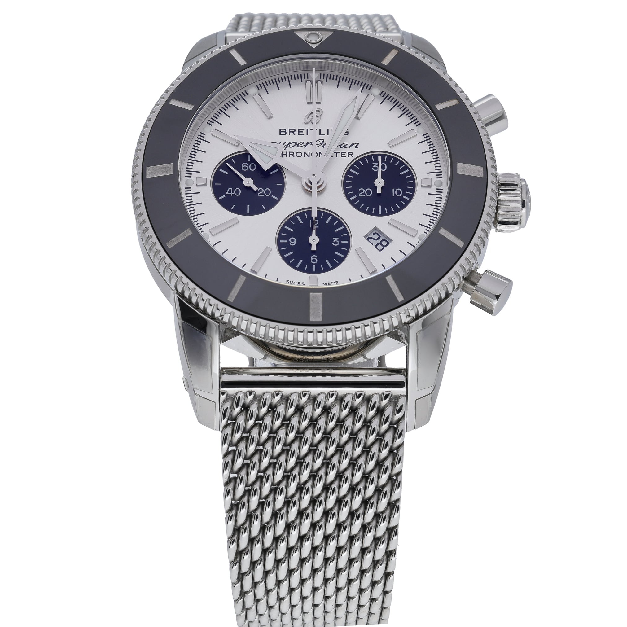 Introducing the stunning BREITLING SUPEROCEAN HERITAGE II CHRONOGRAPH - AB0162121G1A1 - a watch that combines sleek design, superior craftsmanship, and impressive functionality. This timepiece is in excellent condition and features an automatic movement, making it a reliable and accurate choice for any watch enthusiast. Originally released in 2021, this watch has quickly become a favorite among collectors and continues to be a sought-after piece in the luxury watch market. With a folding clasp, ceramic bezel, and chronograph dial, this watch is both functional and stylish. The steel bracelet adds a touch of elegance and durability, while the 44mm case size makes it a statement piece on any wrist. Complete with its original box and papers, this BREITLING SUPEROCEAN HERITAGE II CHRONOGRAPH is a must-have for any gents looking to elevate their watch collection. Don't miss out on the opportunity to own a piece of horological history.