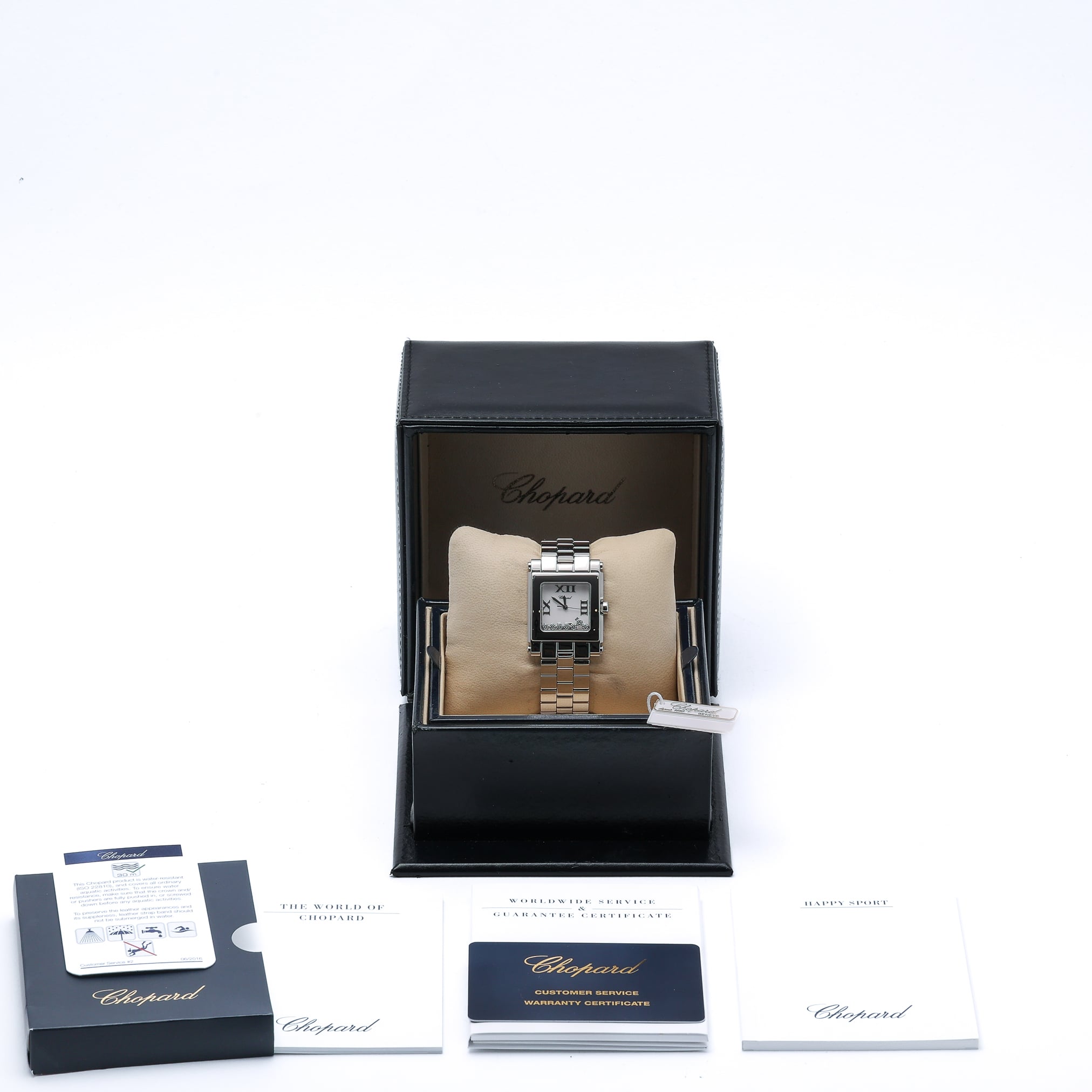Introducing the CHOPARD HAPPY SPORT - 8495 - Watch - 30mm, a timeless piece that combines elegance and functionality. Crafted by the prestigious Swiss brand, Chopard, this remarkable timepiece boasts a delicate 30mm steel case and a stunning Roman dial, exuding sophistication and luxury. The watch features a reliable quartz movement and is in excellent condition, making it a valuable addition to any collection. With its folding clasp, water resistance of 100M, and original papers, this beautiful watch is a must-have for ladies who appreciate fine craftsmanship and impeccable style. Invest in the CHOPARD HAPPY SPORT - 8495 - Watch - 30mm and experience the pure joy and happiness that comes with wearing a Chopard timepiece.