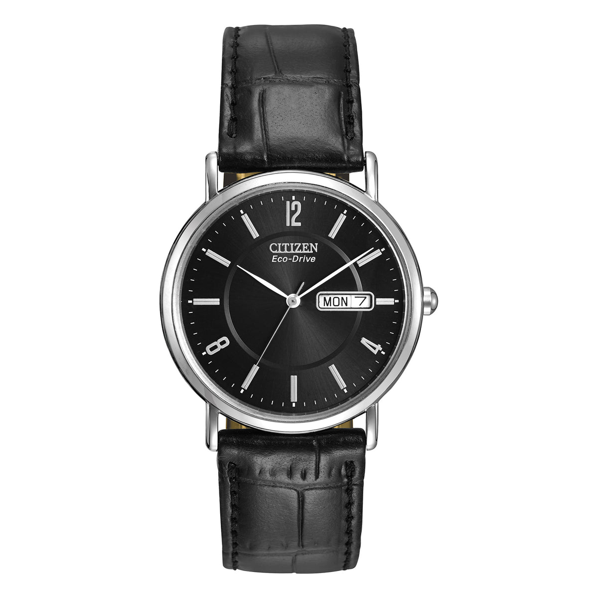 Citizen Men's Eco-Drive 37mm Black Dial Watch with Leather Strap