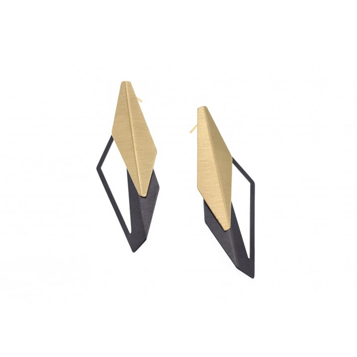 Deco Echo Yellow Gold Plated Rhombus Earrings