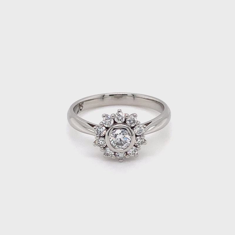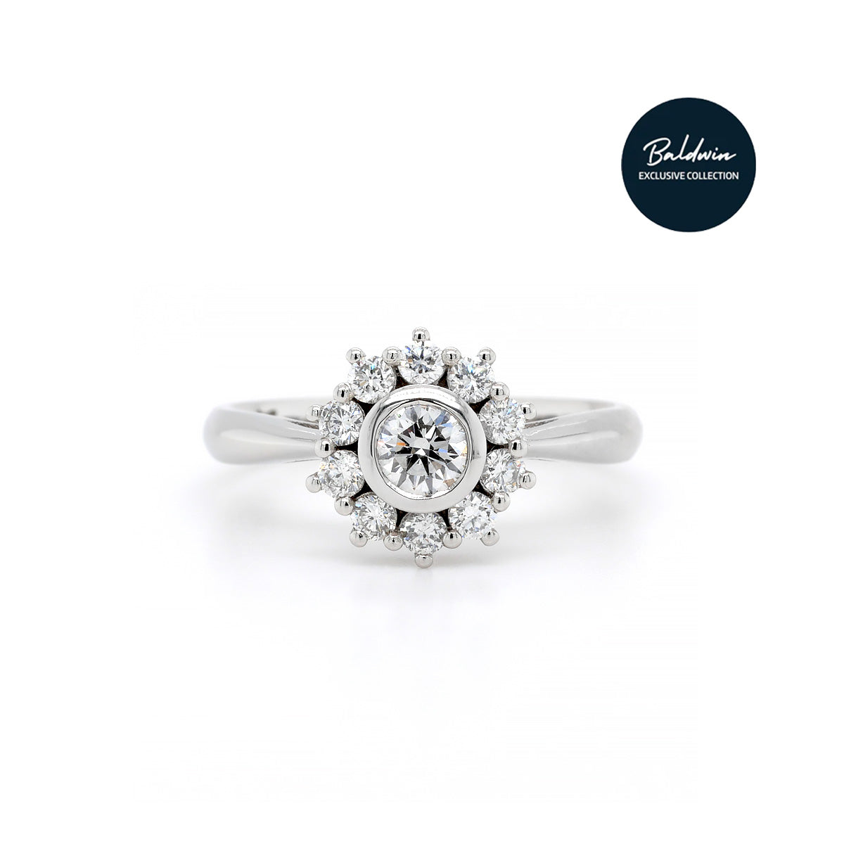 Platinum Floral Cluster Round Central Rubover Set Diamond Ring - BALDWIN ORIGINAL
