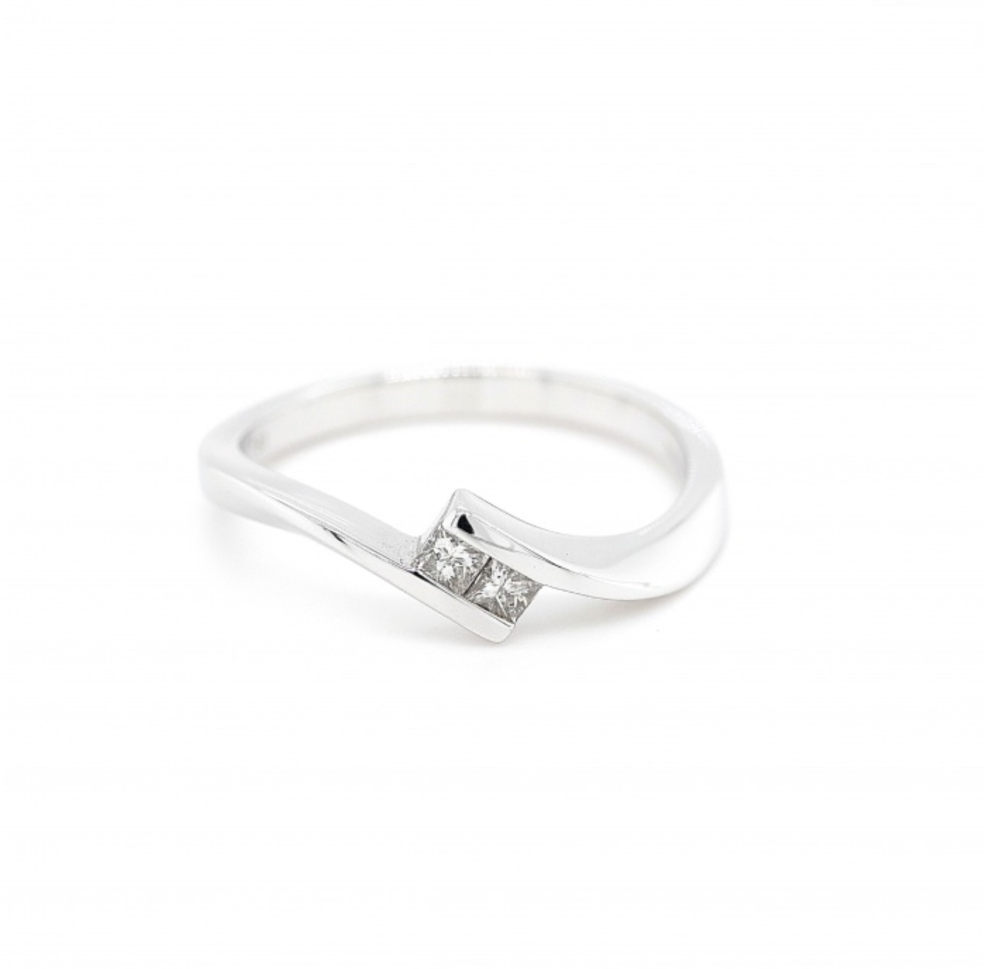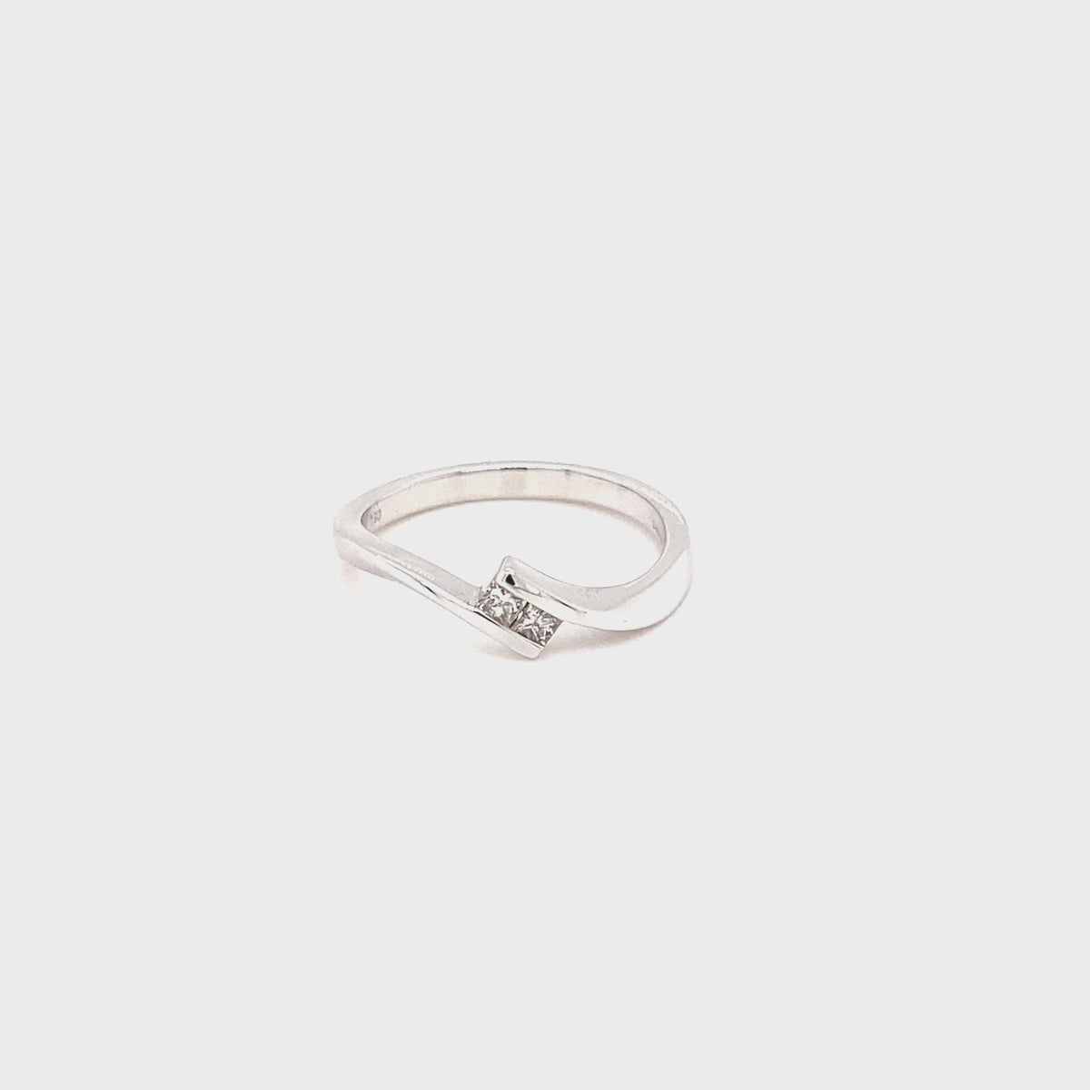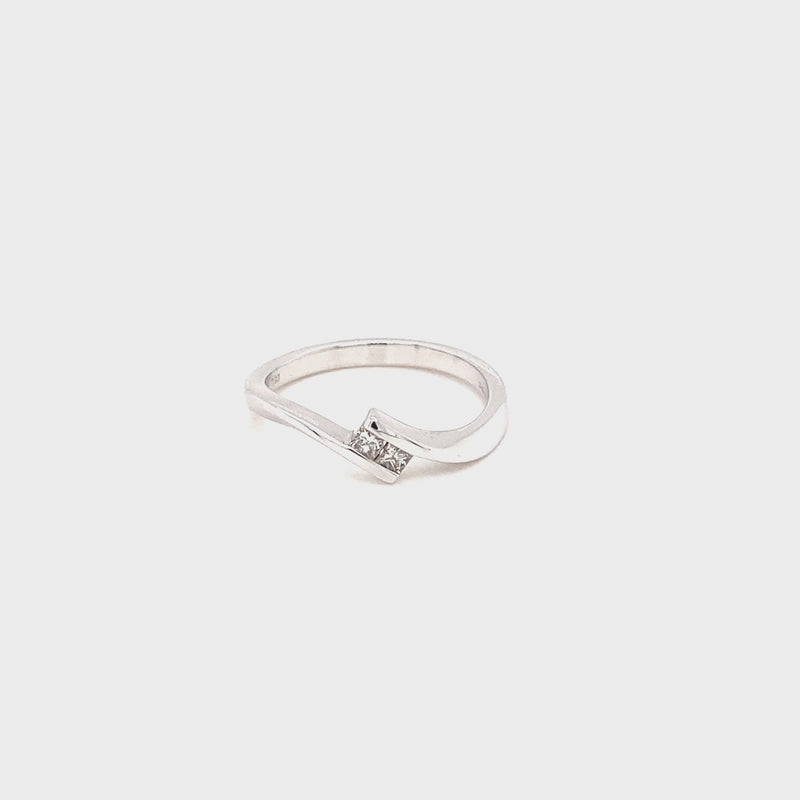 9ct White Gold Princess Cut Crossover 0.2ct Diamond Ring - Size M