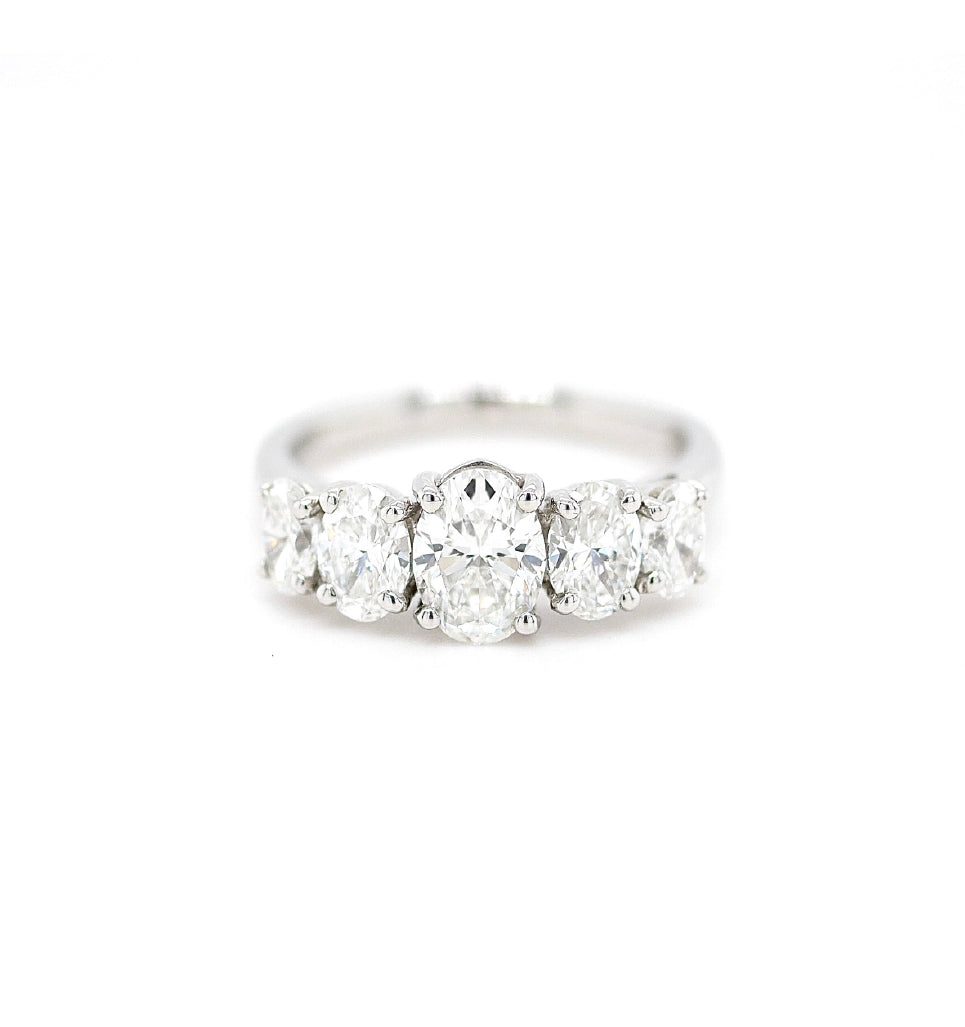 Platinum 5 Stone Oval Cut Diamond Ring (Colour F/G, Clarity VS1/2, Carat 2.17ct, Size M 1/2)