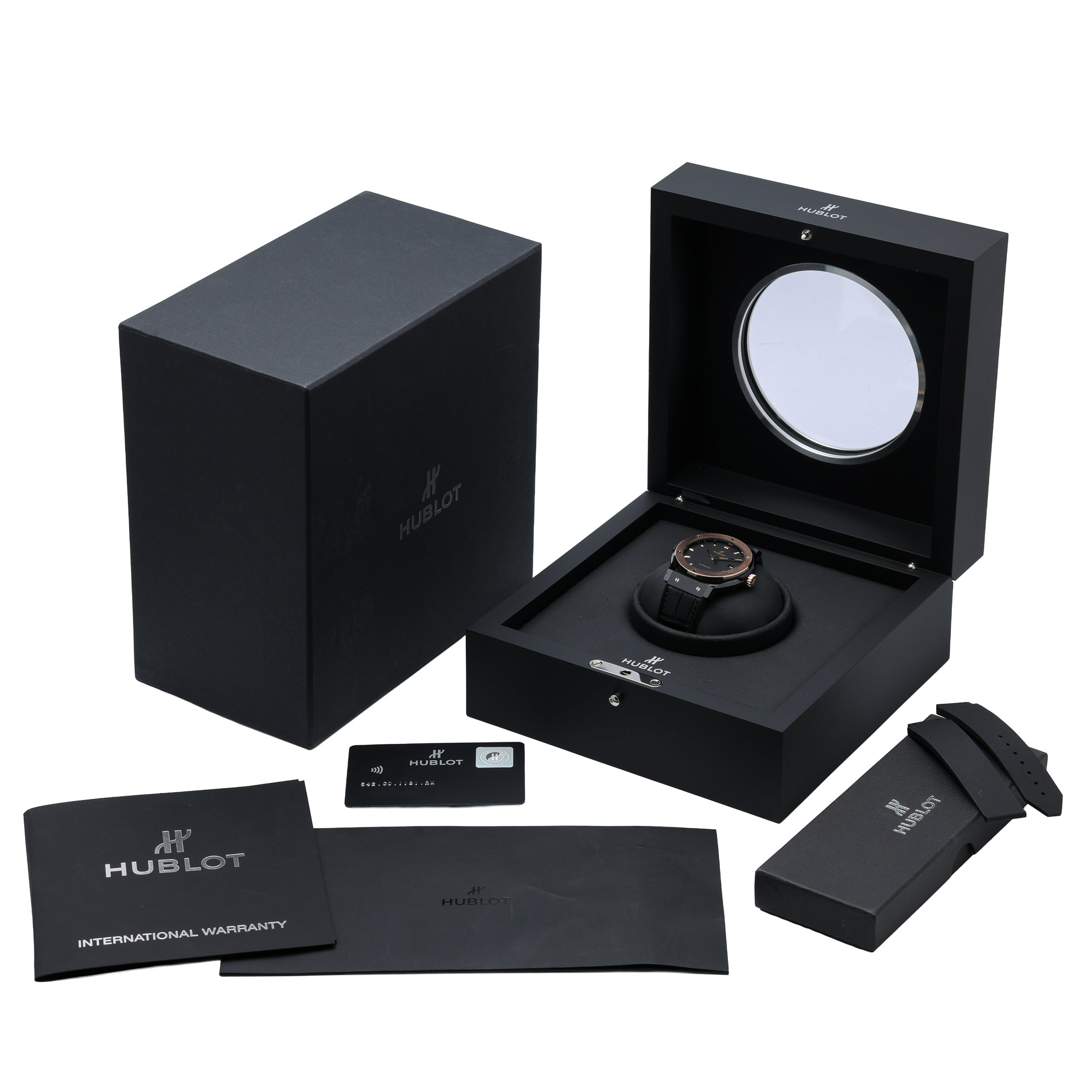 Introducing the stunning HUBLOT CLASSIC FUSION - 542.CO.1181.RX - Watch - 42mm. This exquisite timepiece boasts a sleek and timeless design, perfect for any occasion. HUBLOT, a Swiss luxury watch brand founded in 1980, has been consistently pushing the boundaries of traditional watchmaking with their innovative designs and cutting-edge technology. Crafted with the finest materials, this watch is in excellent condition and features an automatic movement with a 2021 production year. The folding clasp, plain bezel, and baton dial add to the sophisticated charm of this watch. The leather bracelet and 18ct rose gold case exude luxury and elegance. This watch comes with its original box and is water-resistant up to 50 meters. A must-have for any watch collector or fashion enthusiast, the HUBLOT CLASSIC FUSION - 542.CO.1181.RX - Watch - 42mm is a timeless investment that will elevate any outfit. Add it to your collection today and experience the unparalleled craftsmanship and style of HUBLOT.