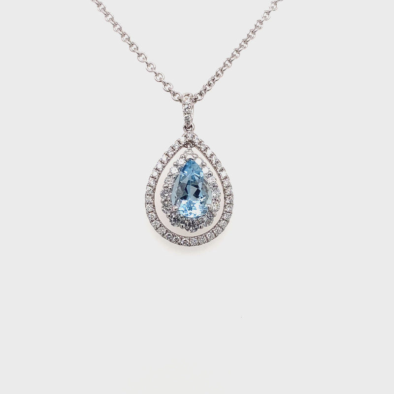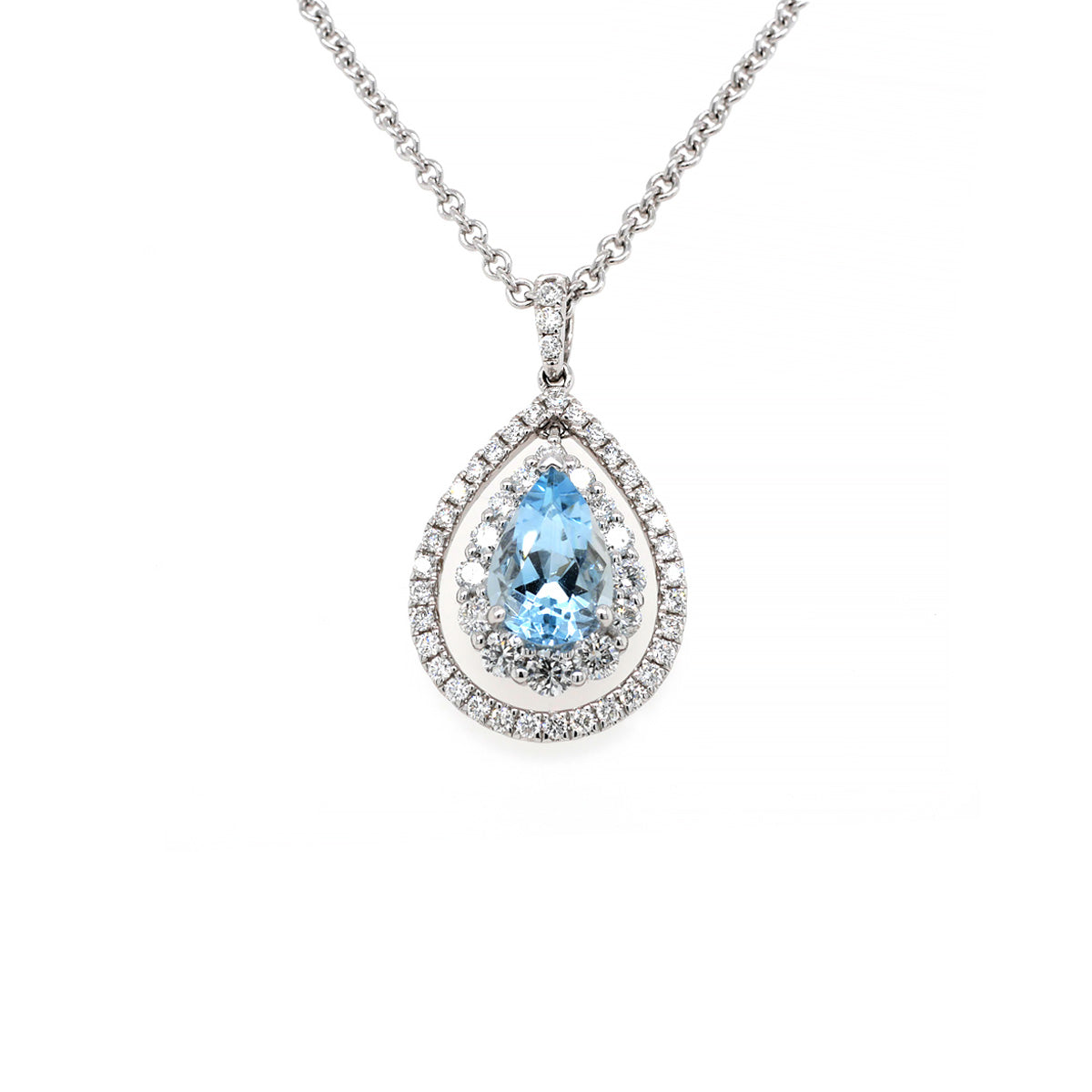 Platinum Aquamarine & Diamond Drop Pendant (No Chain)