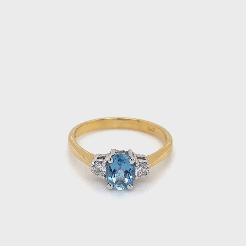 18ct Yellow Gold Aquamarine and Diamond 3 Stone Ring