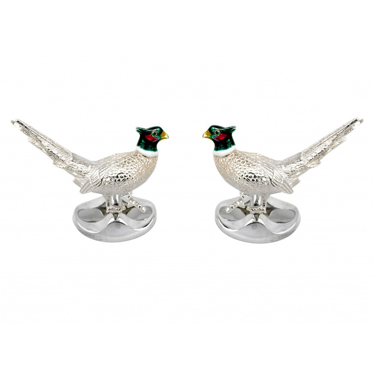 Elevate your style with the Deakin & Francis Enamel Pheasant Cufflinks, featuring intricately designed pheasants with bold green heads and detailed bodies. These cufflinks are a testament to exceptional artistry and attention to detail.