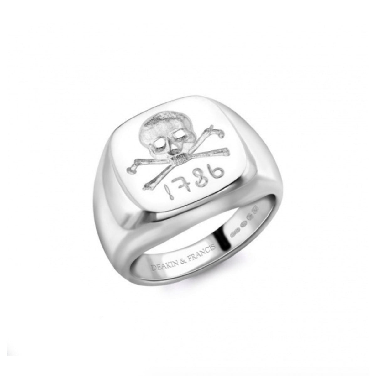 Deakin & Francis Sterling Silver Skull & Crossbones Signet Ring