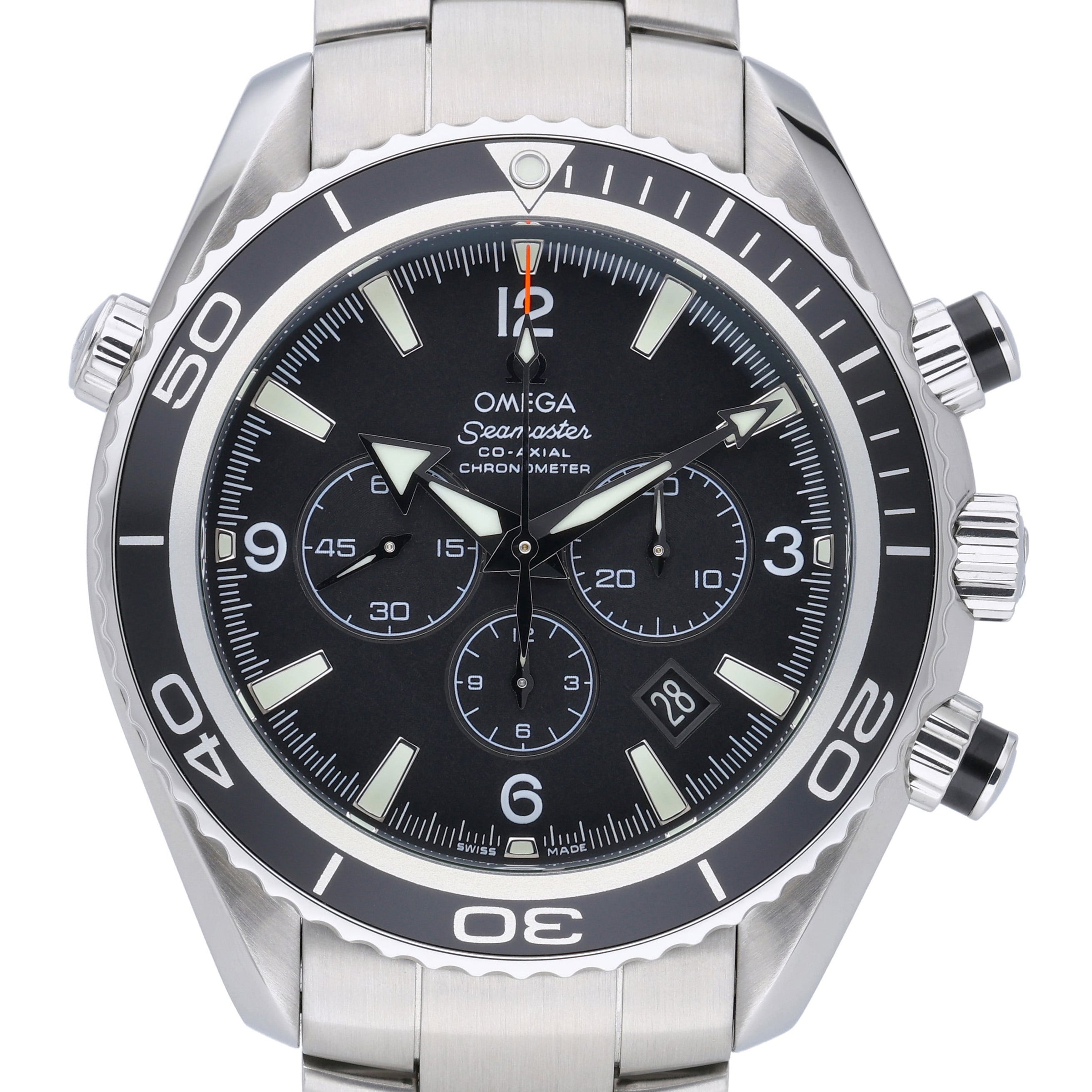 Experience the luxury and precision of OMEGA with the Seamaster Planet Ocean 22105000 watch. Designed with the adventurous and stylish gentleman in mind, this timepiece is a true masterpiece. Crafted in 2010, this watch is in excellent condition and features a 45.5mm steel case and bracelet. The unidirectional rotatable bezel and chronograph dial make it a versatile and functional piece, while the folding clasp ensures a secure fit. With a water resistance of 600M, this watch is perfect for any aquatic adventure. Complete with its original papers and box, this Seamaster Planet Ocean is a must-have for any watch collector or enthusiast. Elevate your style and make a statement with this exceptional timepiece from OMEGA.