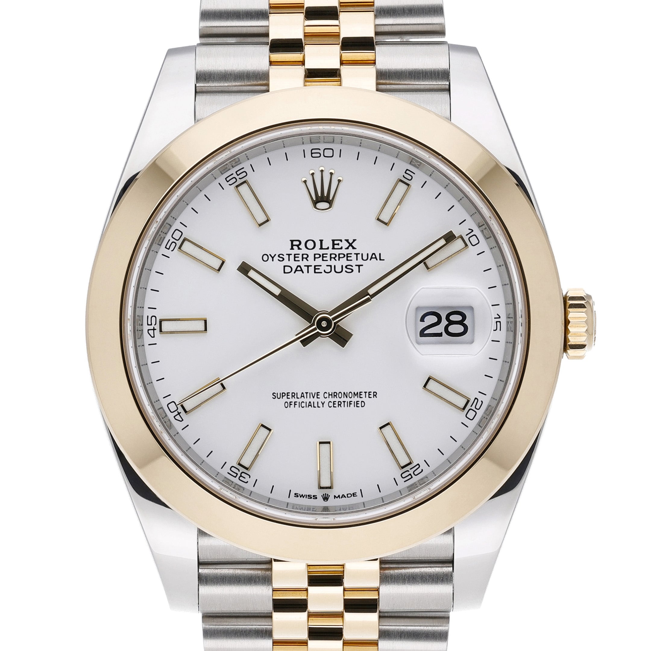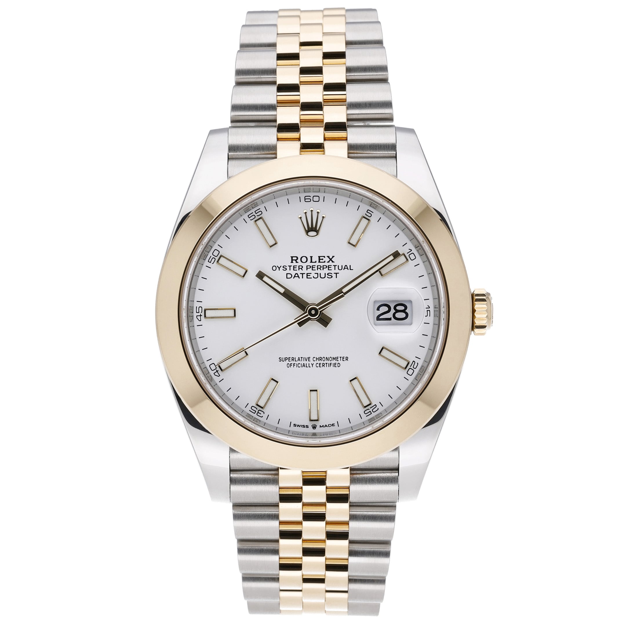 "Introducing the iconic Rolex Datejust 41 - 126303, a true masterpiece in luxury timepieces. With its 41mm case, this watch is the perfect combination of elegance and functionality. Crafted from a stunning blend of steel and yellow gold, this watch is in excellent condition and is sure to make a statement on any wrist. The Datejust model was first introduced in 1945, making it a true classic in the world of horology. Its smooth bezel and plain dial exude a timeless sophistication, while the Jubilee bracelet adds a touch of refinement. Equipped with an automatic movement, this watch will keep you on time for years to come. Complete with a folding clasp and water resistance up to 100 meters, this is a must-have for any gentleman's collection. Don't miss out on owning a piece of history and invest in the Rolex Datejust 41 today."