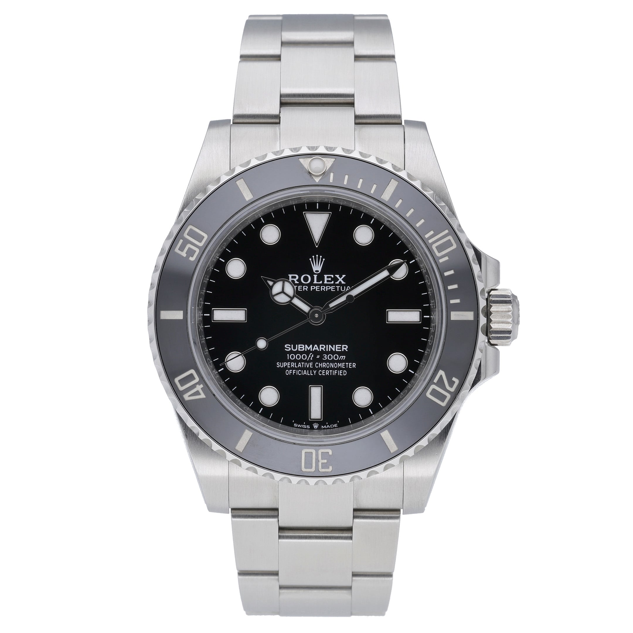 Step into luxury and sophistication with the iconic Rolex Submariner 124060 watch. This stunning timepiece has been coveted by watch enthusiasts and collectors since its debut in 1953, making it a true classic in the world of horology. Crafted with impeccable precision and attention to detail, the Submariner has become synonymous with exceptional quality and timeless elegance. Our 41mm version is in excellent condition, featuring an automatic movement and a sleek Oysterlock clasp. The unidirectional rotatable bezel and plain dial add a touch of understated sophistication, while the Oystersteel bracelet and case provide durability and strength. Water resistant up to 300M, this watch is perfect for any adventure, whether on land or at sea. Complete with a new warranty card and papers, this Submariner is a must-have for any gent looking to elevate their style and make a statement. Invest in a piece of history and experience the feeling of luxury with the Rolex Submariner 124060 watch.