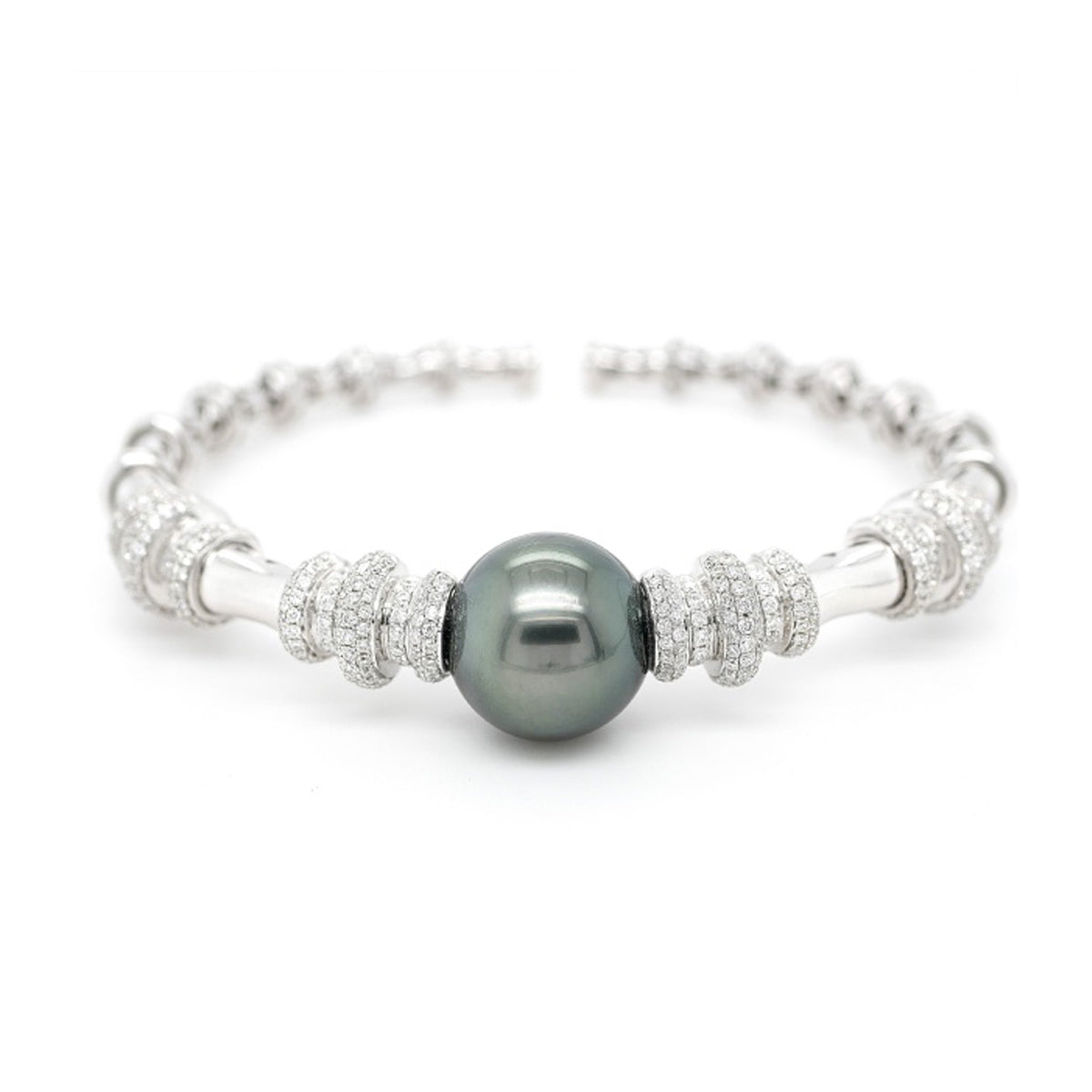 Yoko London 18ct White Gold Tahitian Pearl and Diamond Bangle