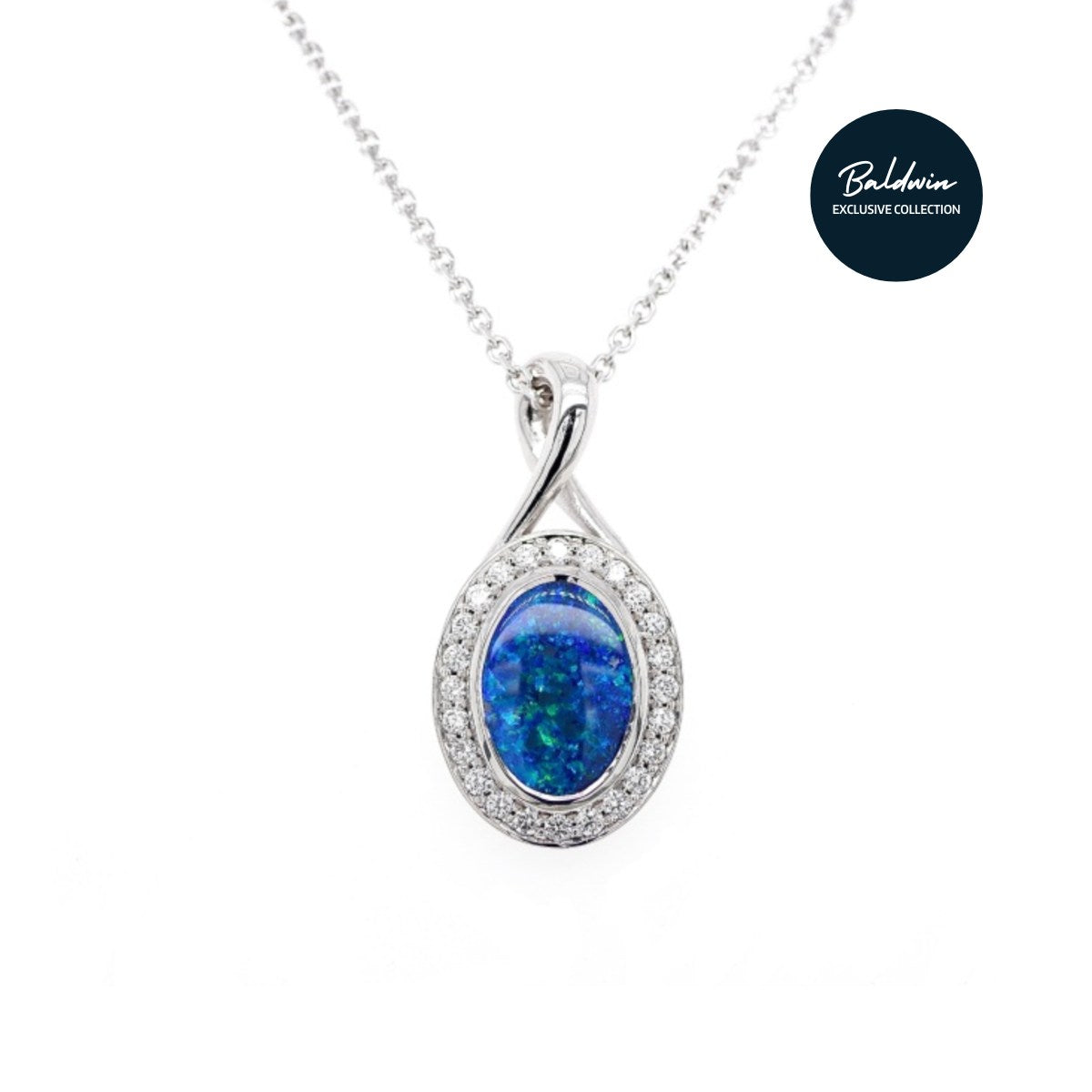 18ct White Gold 2.84ct Black Opal & 0.36ct Diamond Pendant