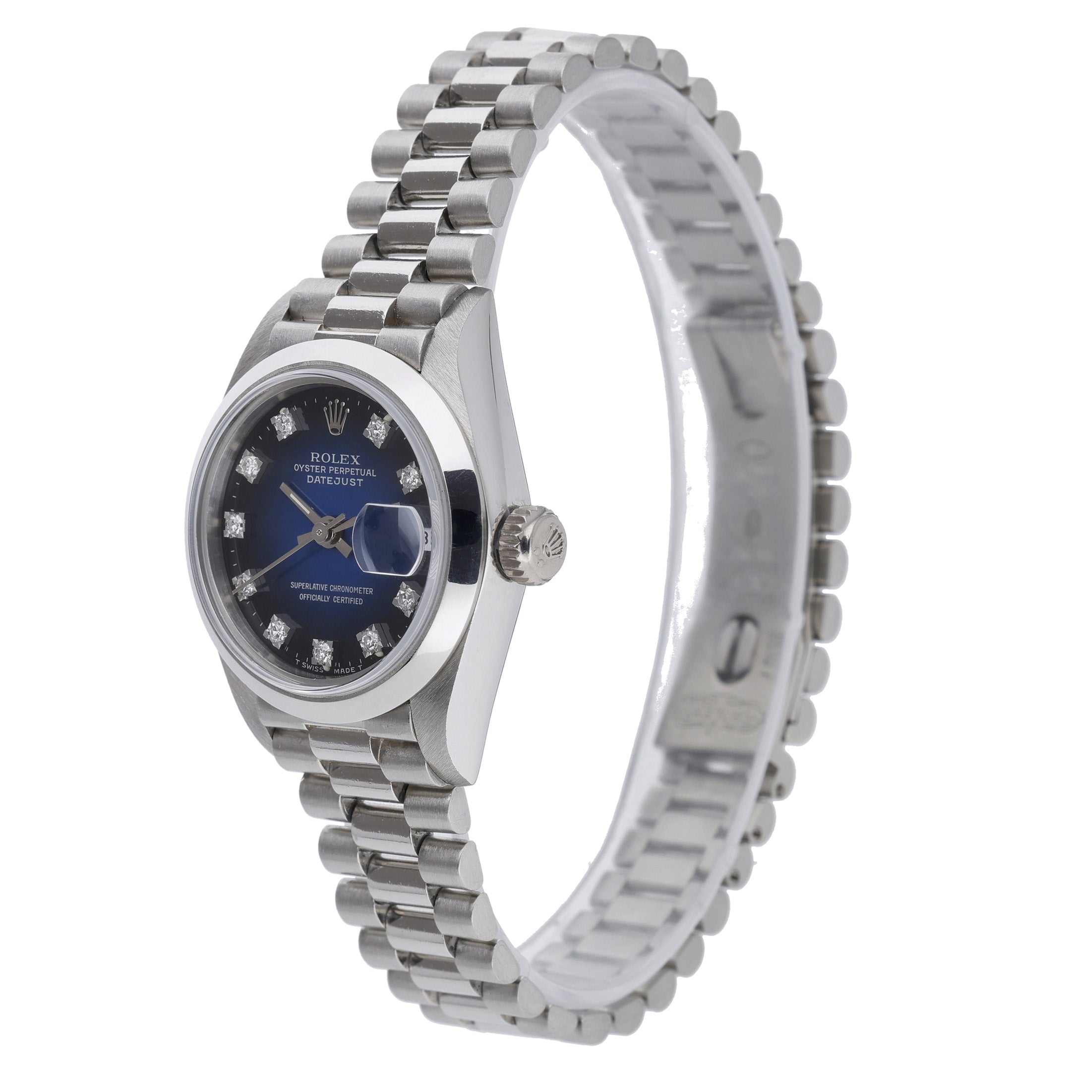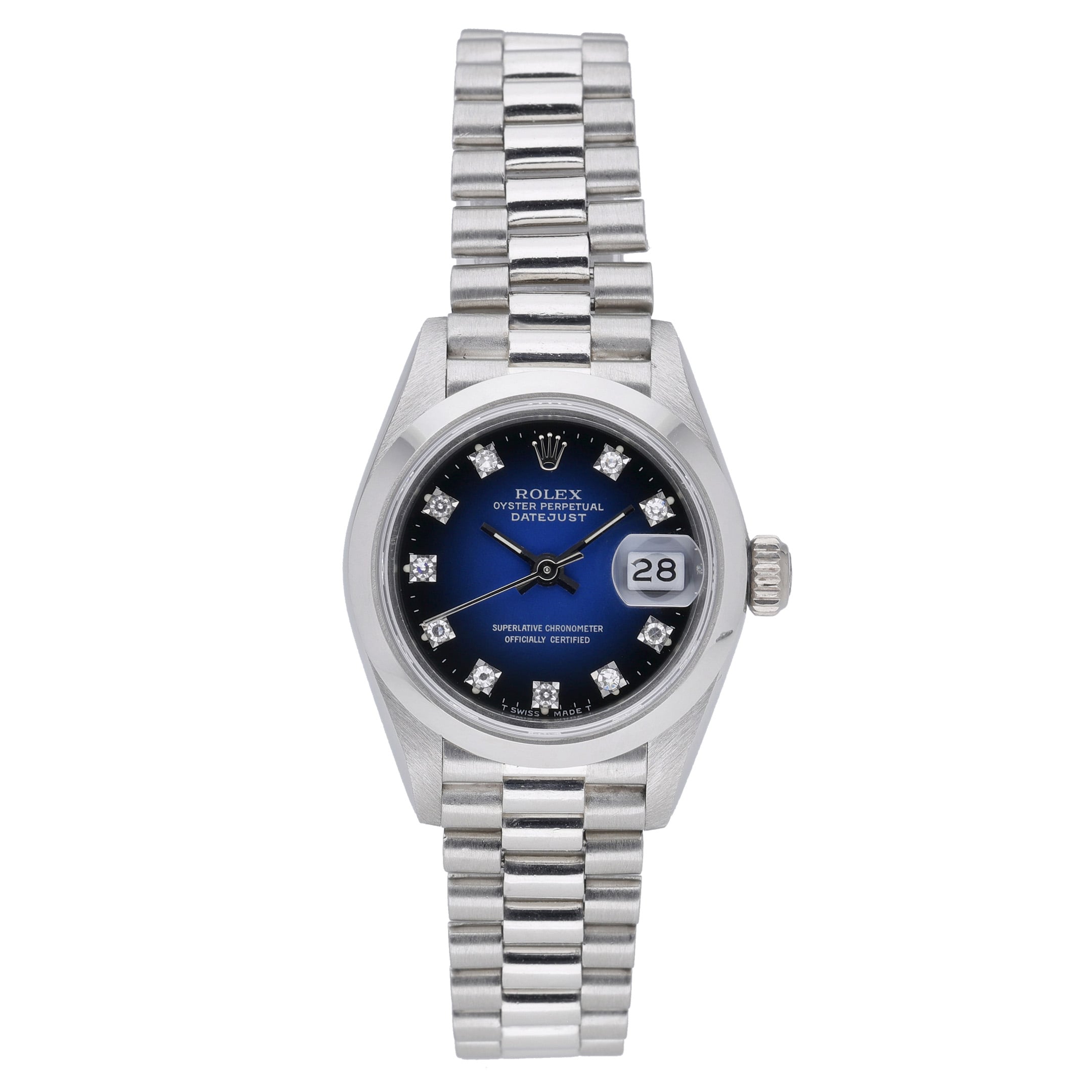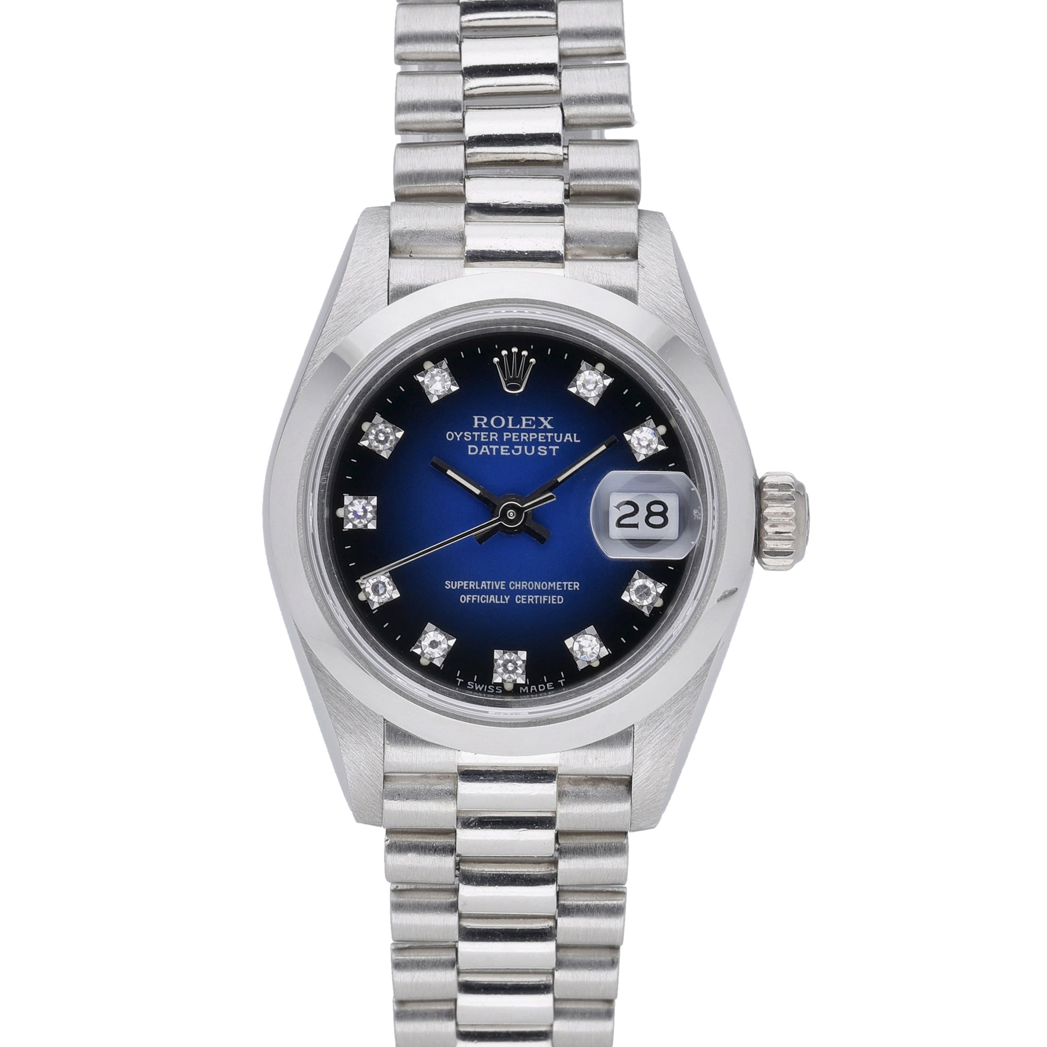 Discover the timeless elegance of the ROLEX DATEJUST - 69166 - Watch - 26mm, a stunning piece from one of the most iconic luxury watch brands in the world. With its origins dating back to 1905, Rolex has become synonymous with precision, prestige, and innovation. This particular model, crafted in 1980, features a sleek and stylish 26mm platinum case and bracelet, adorned with a dazzling diamond dial. The folding clasp ensures a secure and comfortable fit, while the plain bezel adds a touch of sophistication. As a must-have addition to any watch collection, this ladies' timepiece is in excellent condition and comes with its original box and authenticity papers. Don't miss the opportunity to own a piece of Rolex history and elevate your style with the ROLEX DATEJUST - 69166 - Watch - 26mm.