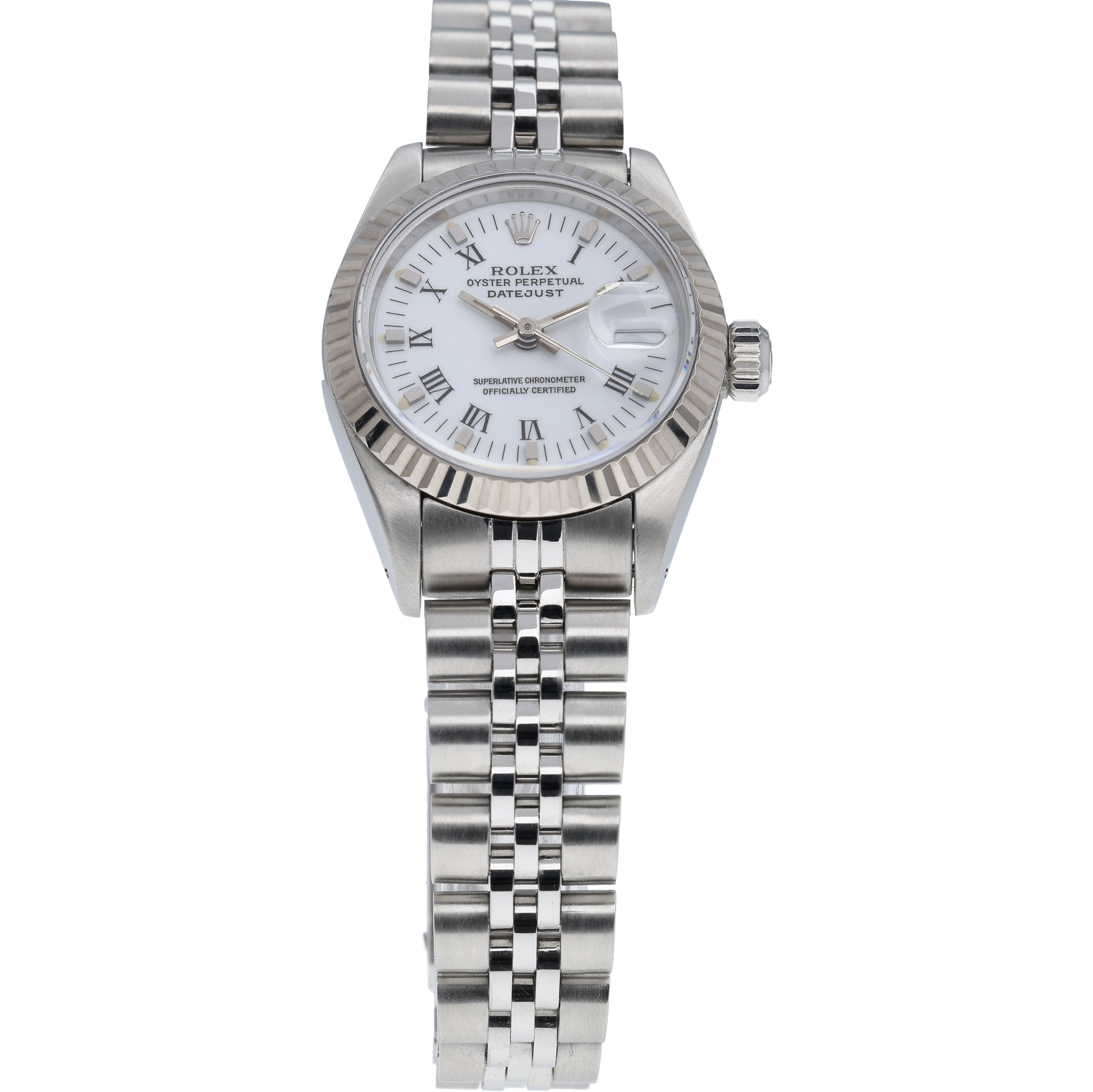 Introducing the timeless elegance of the ROLEX DATEJUST - 69174 - Watch - 26mm. This exquisite timepiece boasts a history dating back to 1945 when it was first introduced as the world's first self-winding chronometer wristwatch. Crafted with precision and attention to detail, this ladies watch features a stunning 26mm steel and white gold case, accented with a fluted bezel and a classic Jubilee bracelet. The Roman dial adds a touch of sophistication, while the automatic movement ensures accurate timekeeping. With its excellent condition and original papers, this ROLEX DATEJUST is a must-have for any watch collector or style enthusiast. Elevate your everyday look with this iconic piece and experience the luxury and prestige that comes with owning a ROLEX.