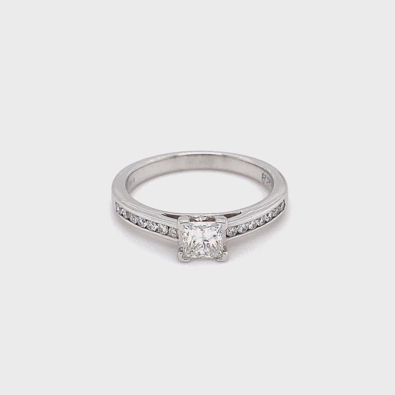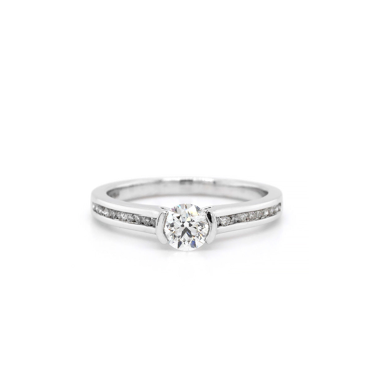 18ct White Gold 0.4ct H SI Solitaire Diamond Ring with Channel Set Shoulders