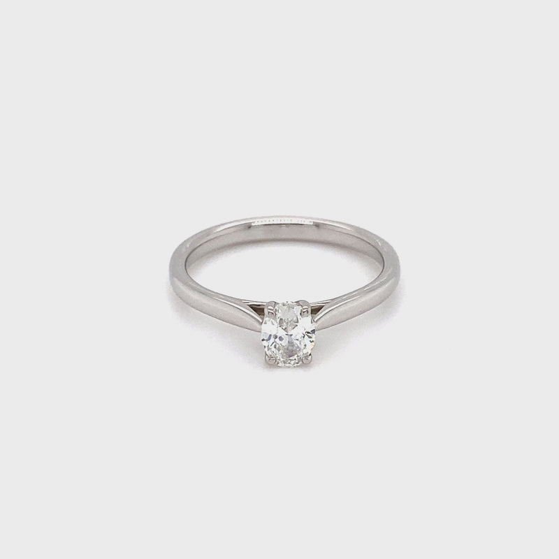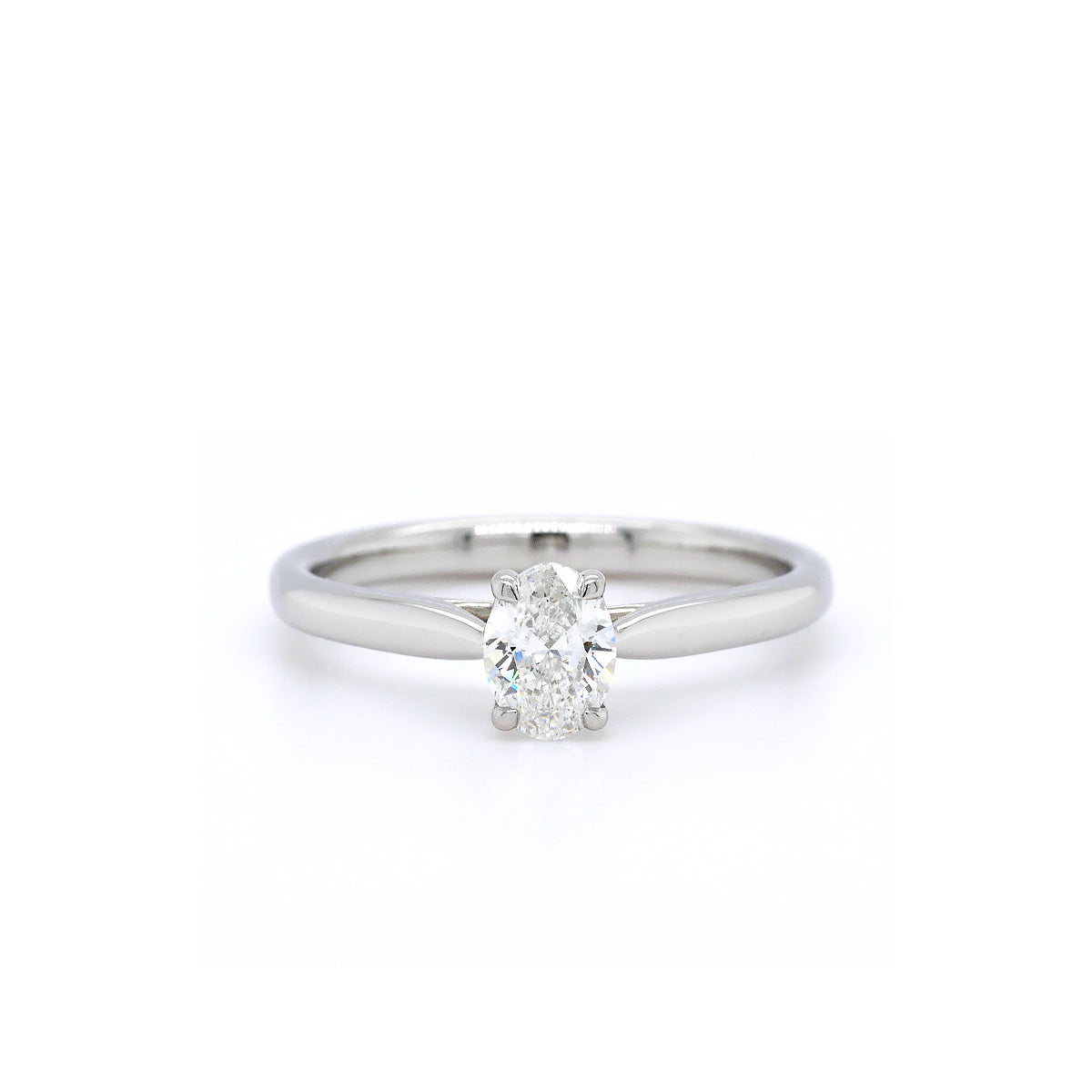 Platinum Single Stone 0.9ct Oval Diamond Ring - Size M