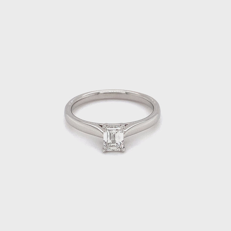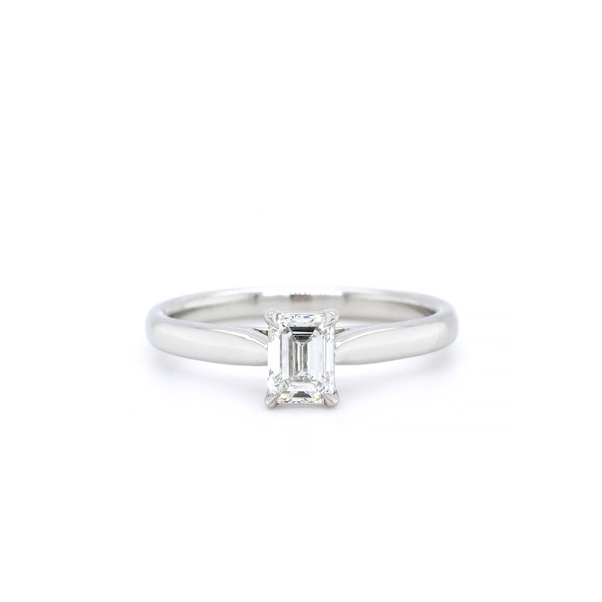 Platinum 4 Claw Emerald Cut Single Stone Diamond Ring