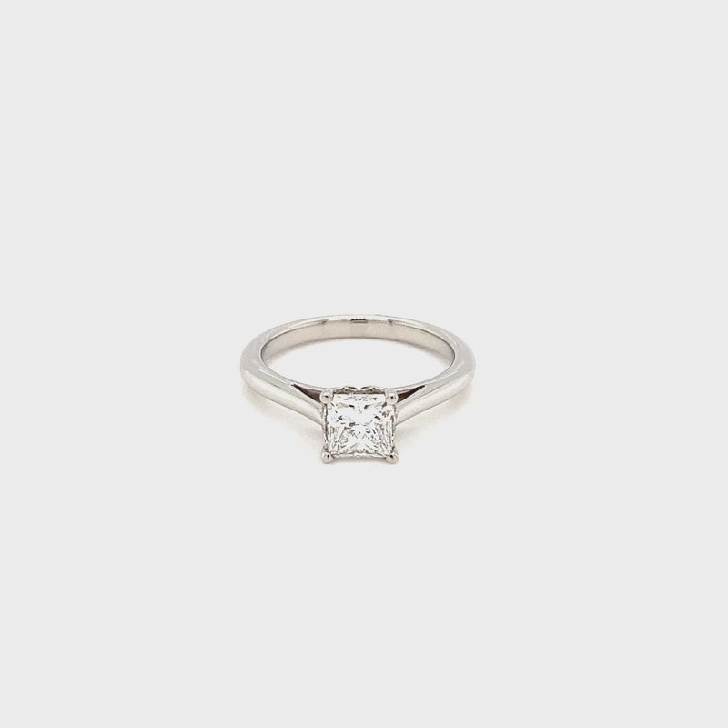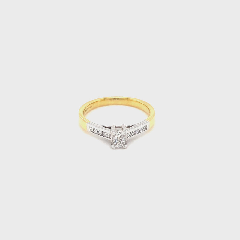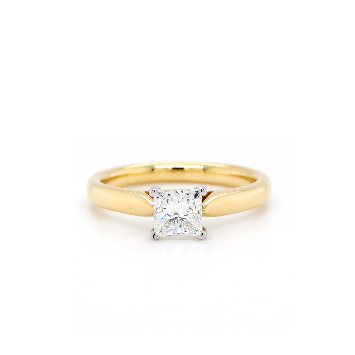 18ct Yellow Gold Shank and Platinum Head Single Stone Princess Cut Diamond Ring