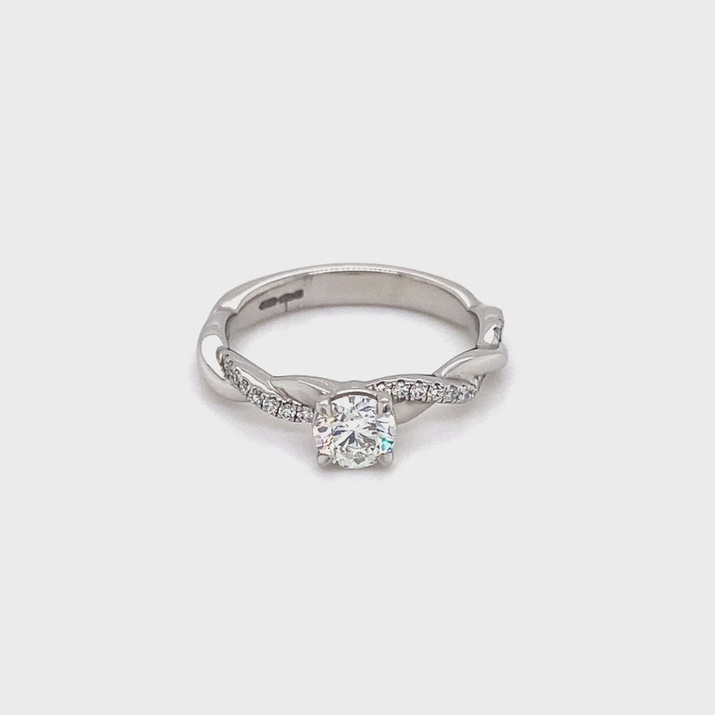 Platinum Single Stone Twist Round Brilliant 0.40ct Diamond Ring - Size M