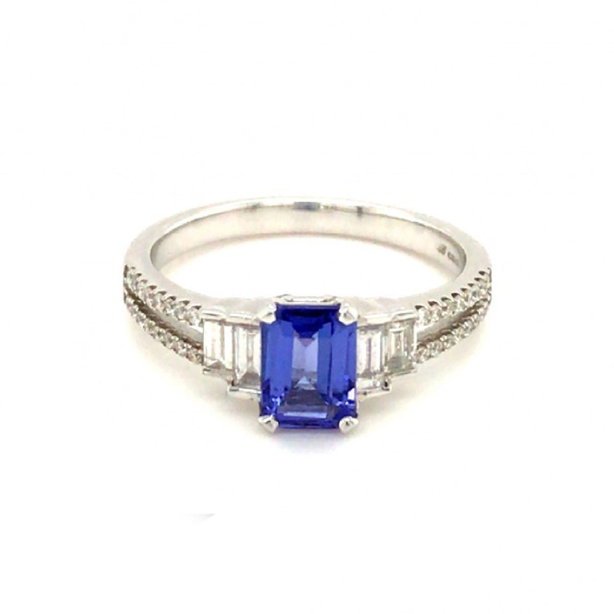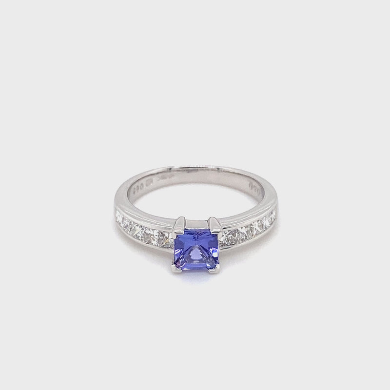 18ct White Gold Princess Cut Tanzanite and Diamond Ring
