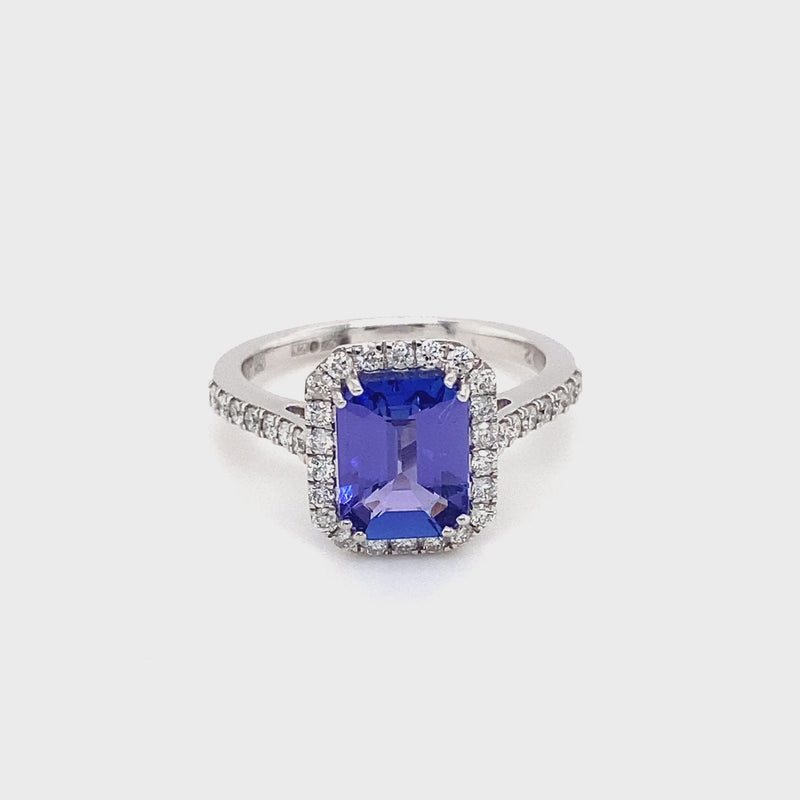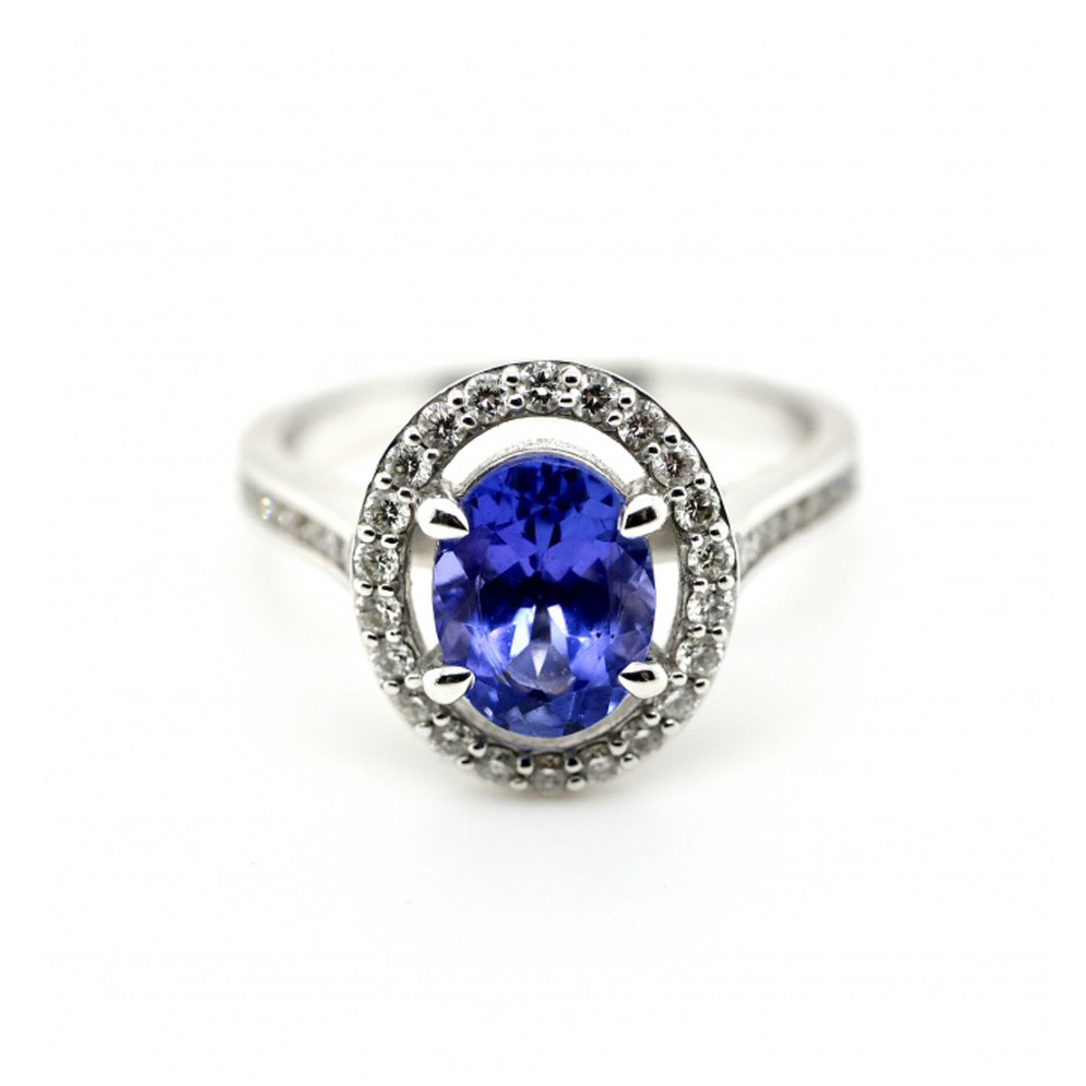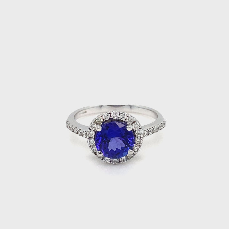 18ct White Gold Tanzanite & Diamond Halo Ring - Size M
