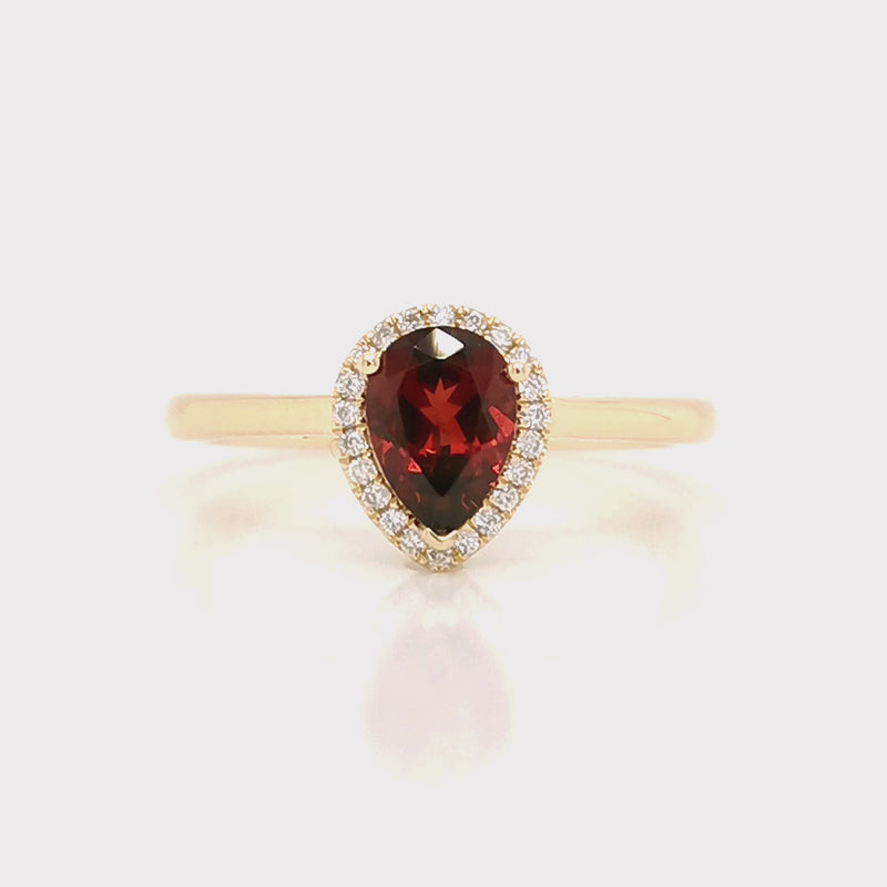 TIVON 18ct Yellow Gold Pear Cut Garnet and Diamond Ring