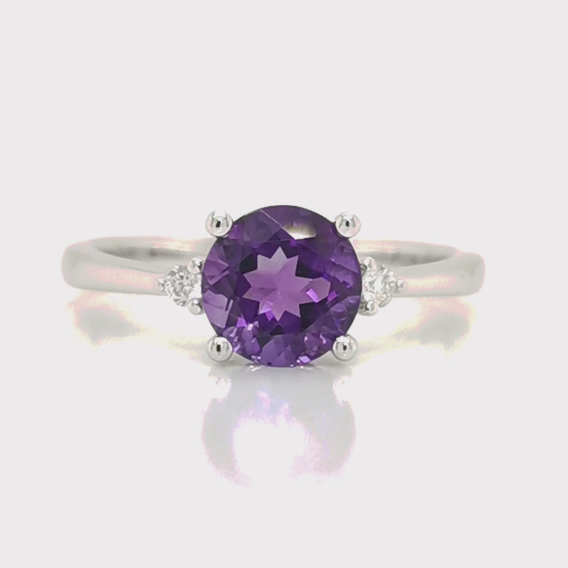 TIVON 18ct White Gold Round Brilliant Cut Amethyst and Diamond Ring