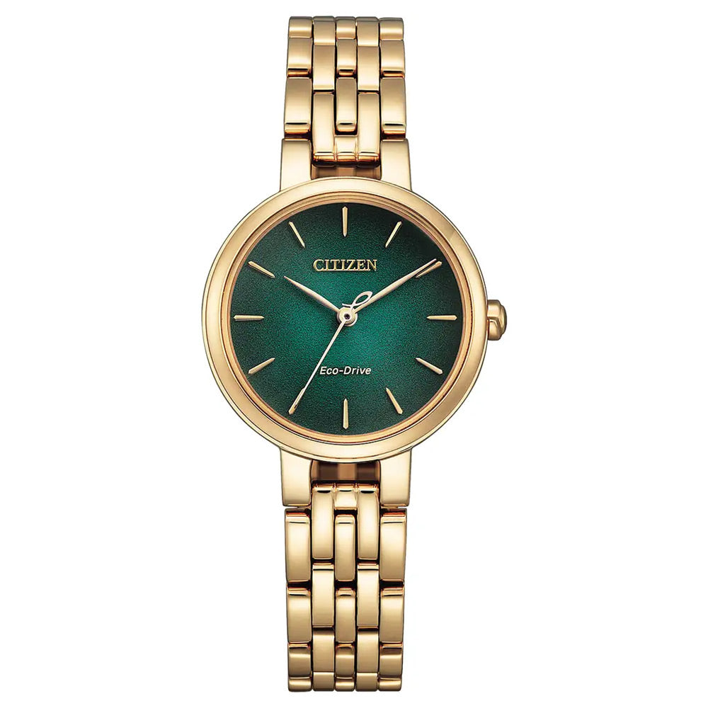 Citizen EM0993-82Z Ladies Eco-Drive Rose Gold Strap Green Face Watch 28mm