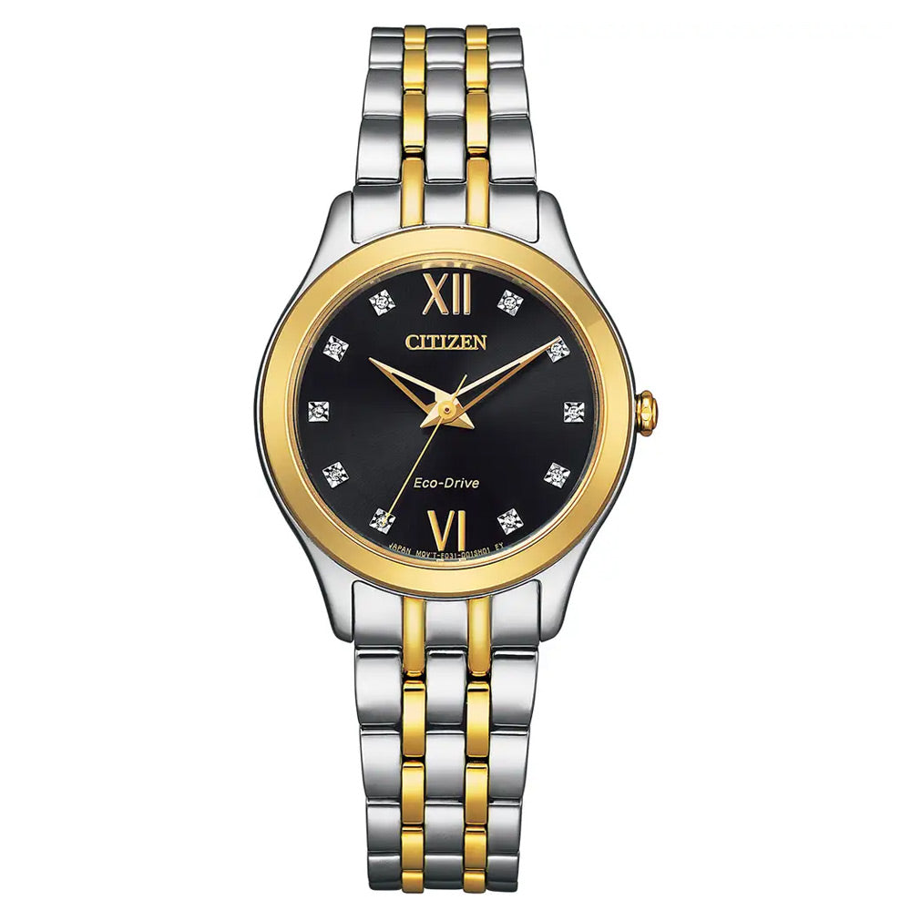 Citizen EM1014-50E Ladies Eco-Drive Two-Tone Dark Face Watch 26mm