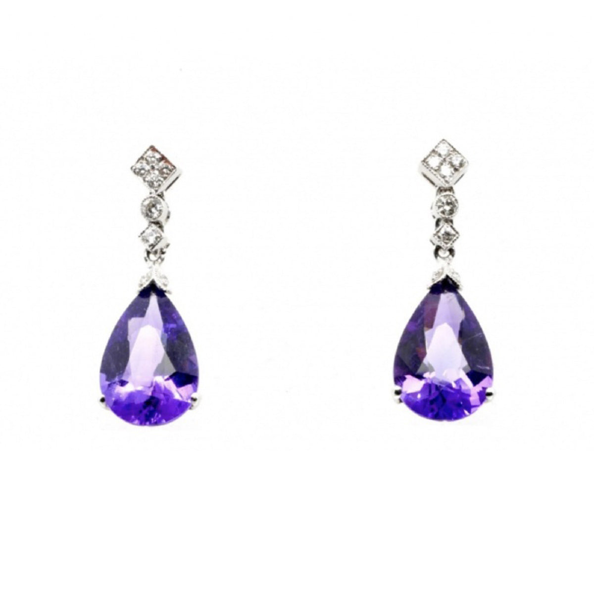 18ct White Gold Art Deco Style Amethyst & Diamond Drop Earrings