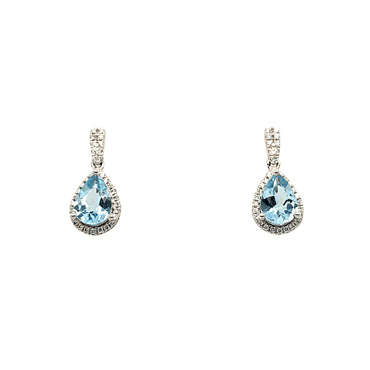 18ct White Gold Aquamarine & Diamond Teardrop Earrings