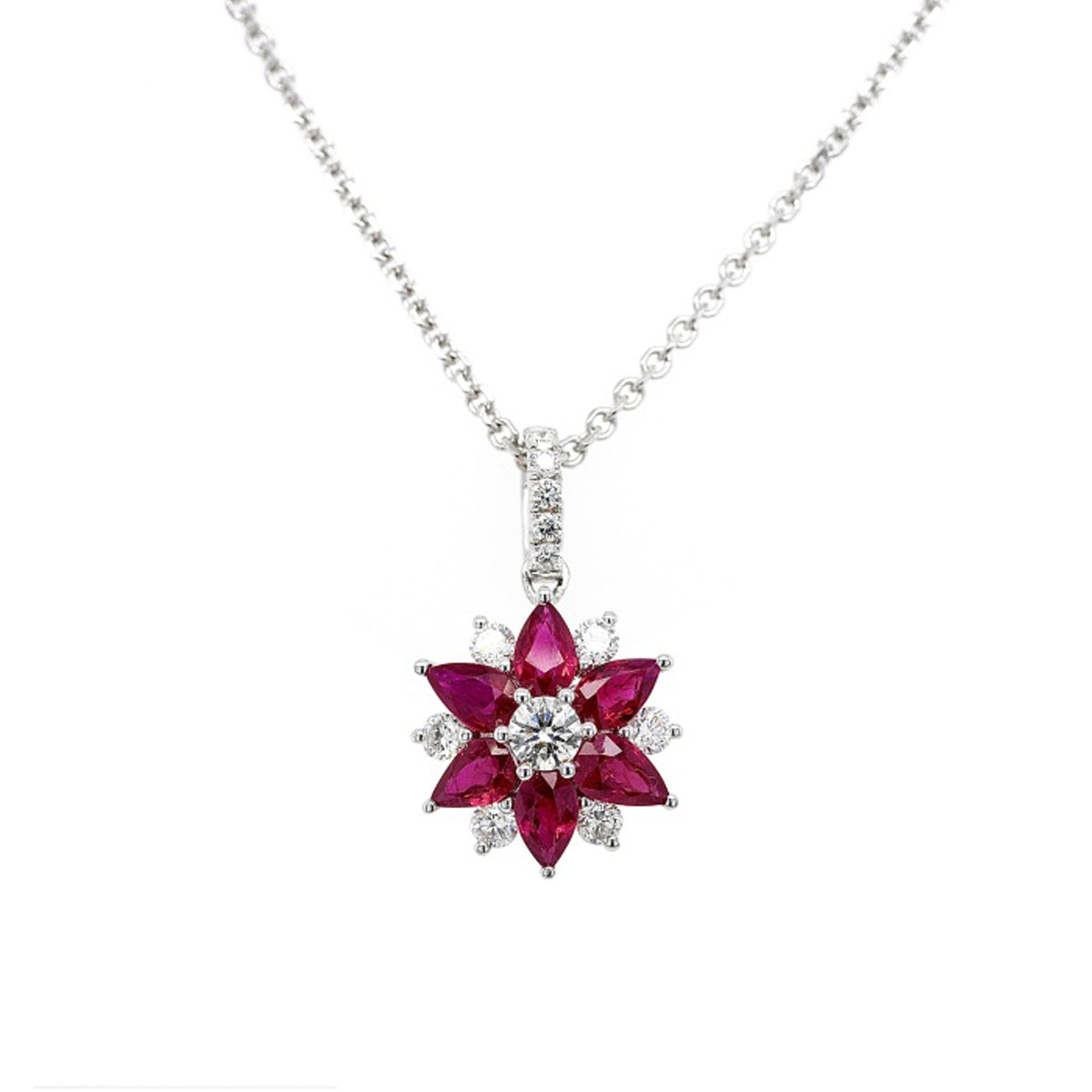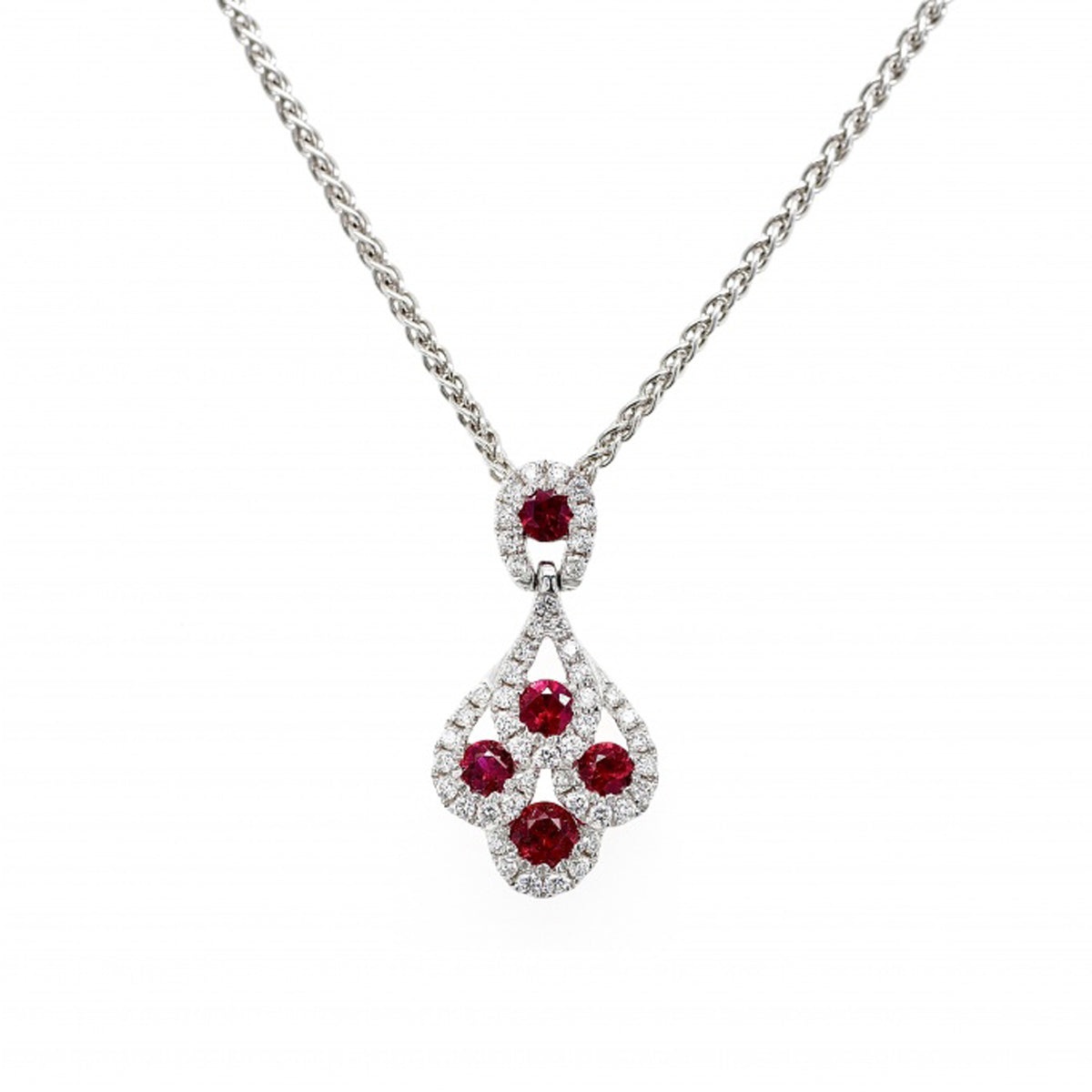 18ct White Gold Ruby Diamond Teardrop Pendant