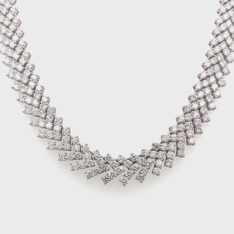 18ct White Gold Chevron Link Necklace with 310 Round Brilliant Cut Diamonds, 11.43ct F-G, SI-VS2