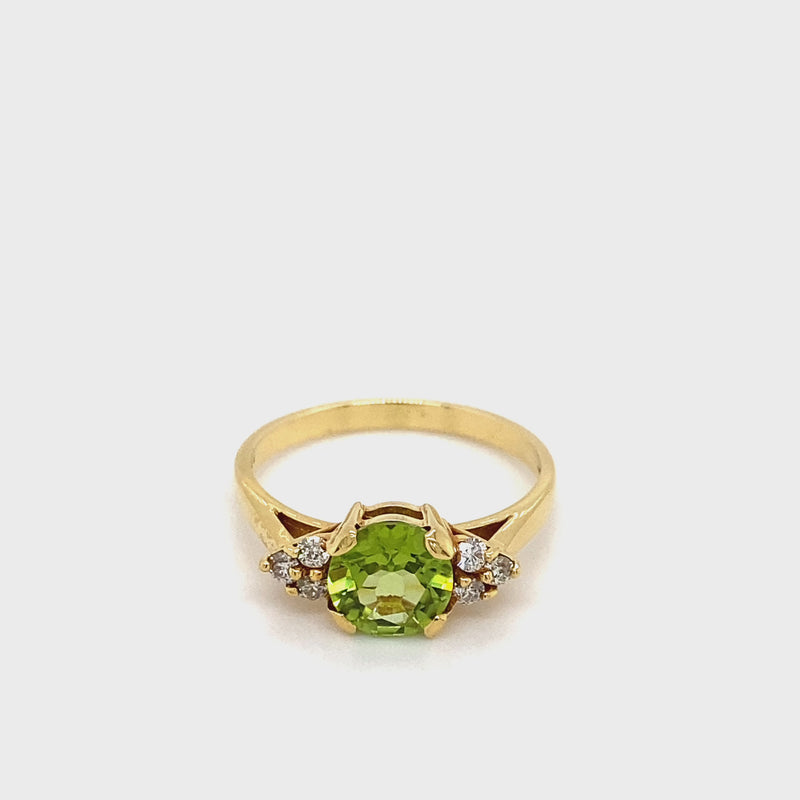 18ct Yellow Gold Peridot and Diamond Trefoil Ring
