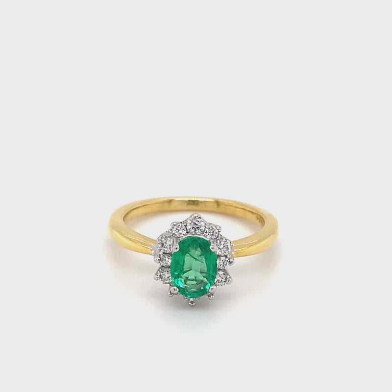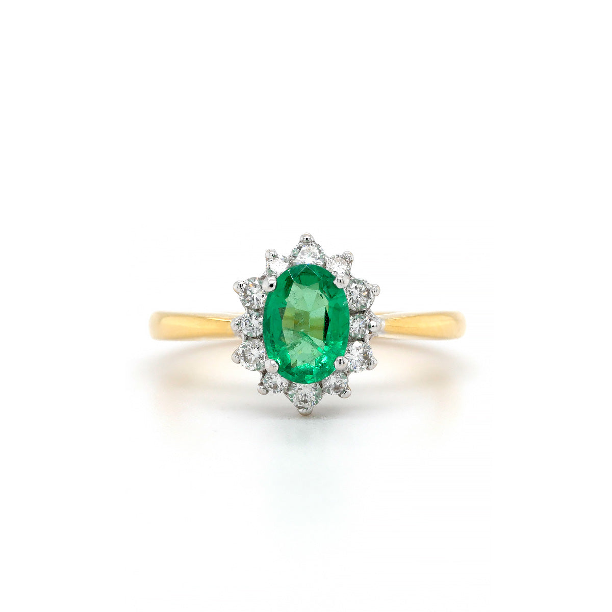 18ct Yellow and White Gold Emerald and Diamond Cluster Ring