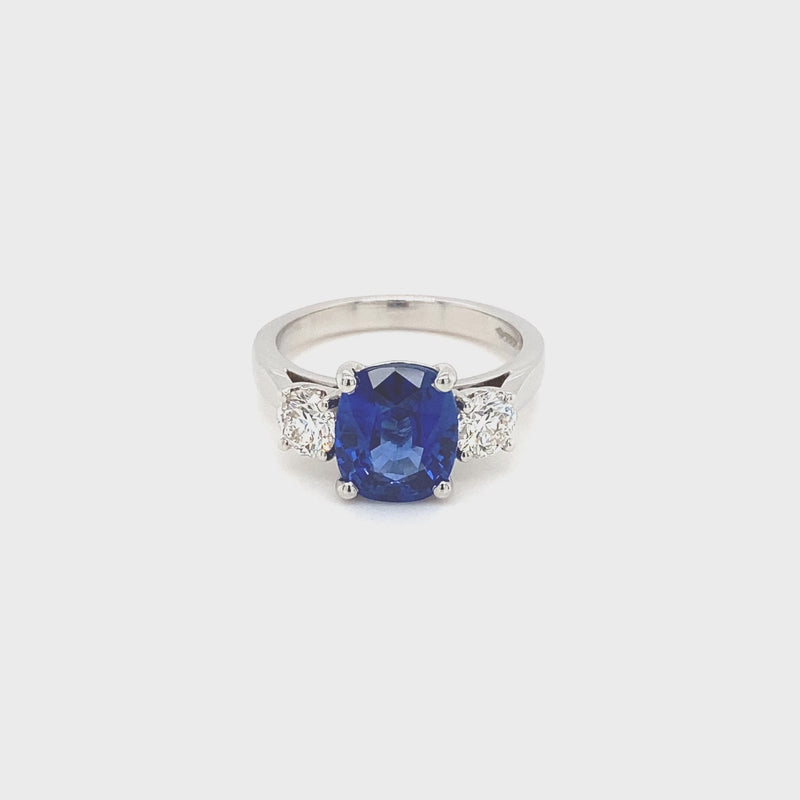 Platinum 2.81ct Sapphire & 0.67ct Diamond 3 Stone Ring
